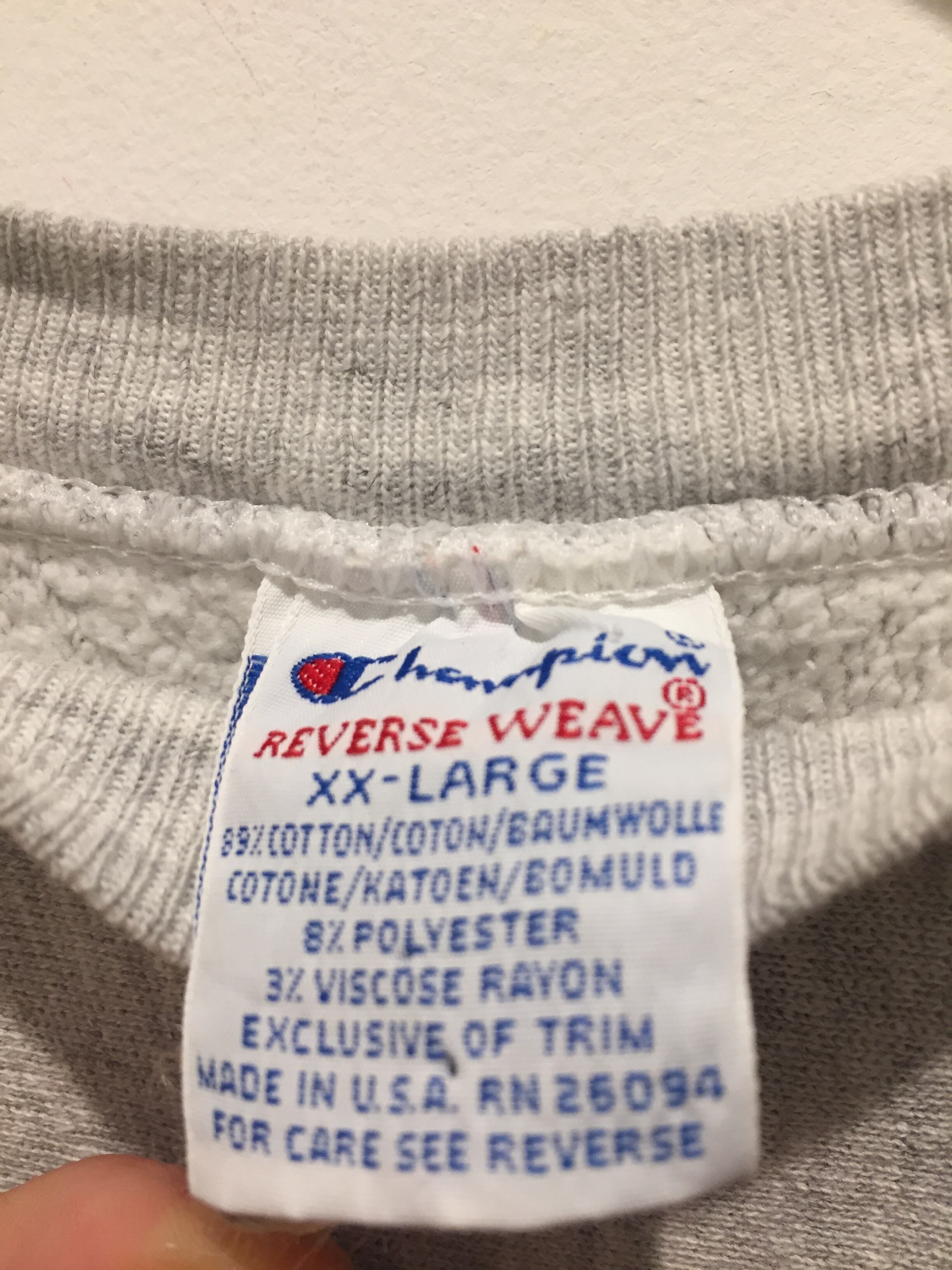 90年代前半の刺繍タグが付くアメリカ製チャンピオンリバースウィーブです。こちらは珍しいバッグプリント付きのリバースとなります。そして玉数が少なく希少なXXLサイズでかなり大きめなサイズ感です。リバースを大きめに着用したい方にはバッチリな1着です。小柄な女性がワンピースの様に着用しても良いですね。アメリカ製のリバースはだんだんと減ってきていてプラスバッグプリント付きはなかなか見つかりづらいので希少な1点ですね。