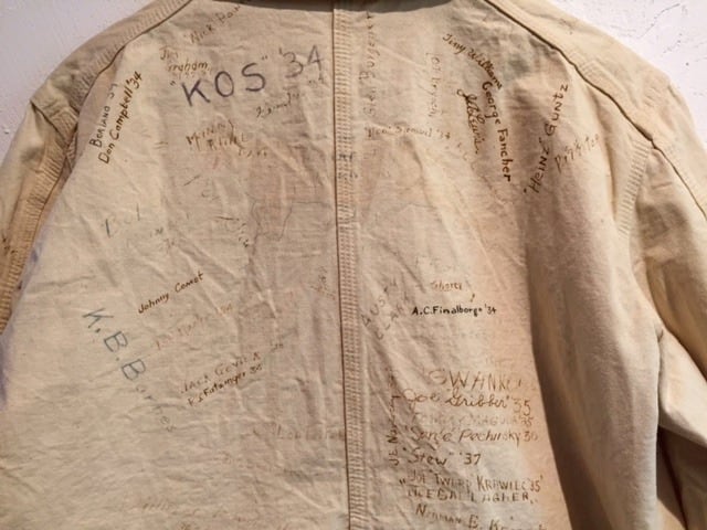 生成りのペイントカバーオールは個人的に好きなアイテムでダブルウエアーのは金ボタンでたまに見かけますがこちらはそれよりも古いタイプであまり見かけないと思います。