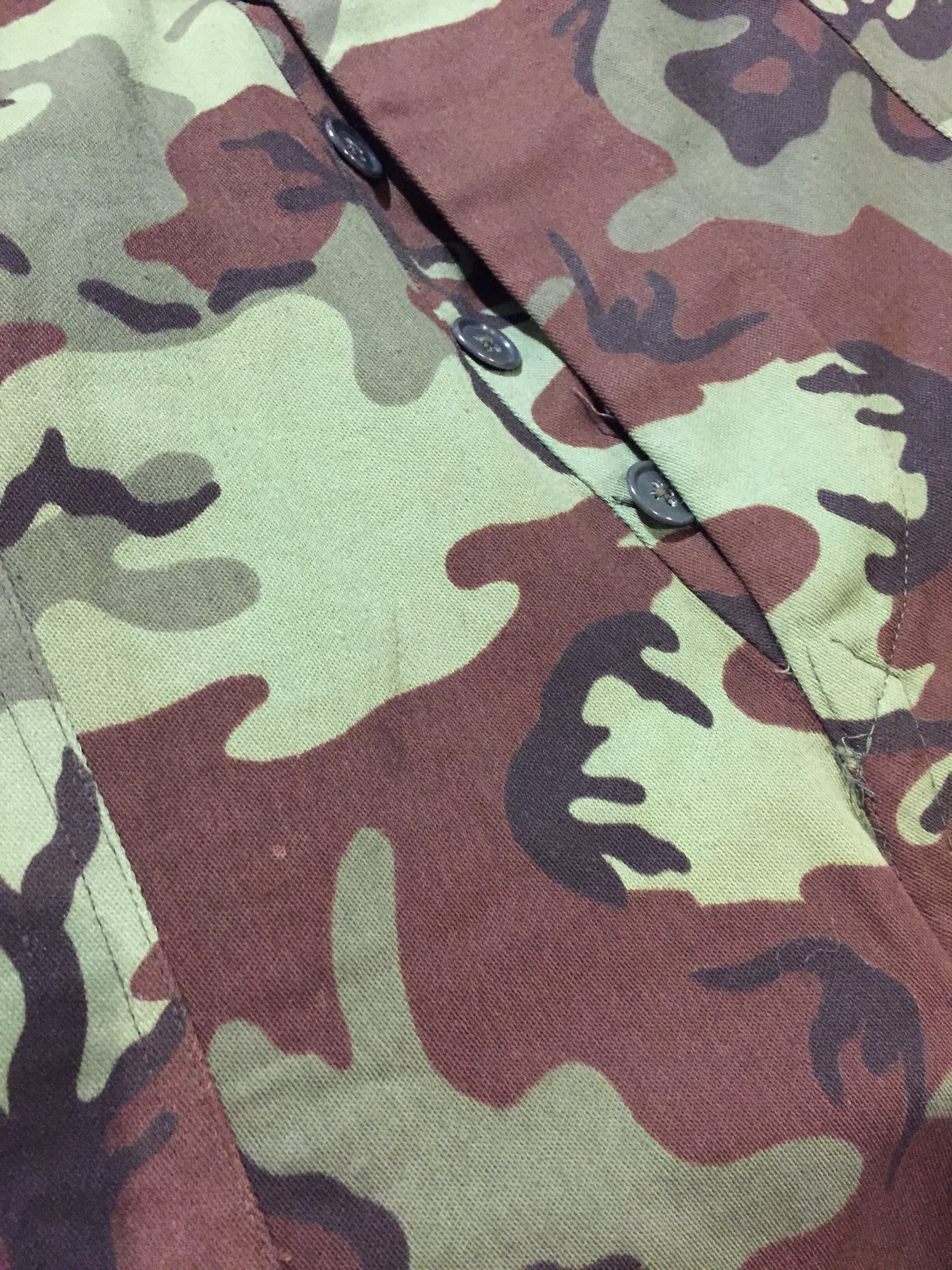 60年代のベトナム戦争時の物でARVNとは(Army of the Republic of Vietnam)の略で、南ベトナム軍を表します。形はベイカーパンツと同じでベルトループも付きます。そして膝パッチが付くのが特徴です。生地はパステルリーフと呼ばれるタイプで、コットンサテン地に発色の良いカモフラ柄が入ります。中にはT.T.S.X.Q.T(南ベトナム軍被服廠)のスタンプが入り、サイズはQ7、製造年は68or69年10月と読み取れます。このスタンプがあるのは重要なポイントですね。存在自体は知っている方も多いですが、実際店頭などではあまり見かける物でもなく、とても希少なアイテムとなります。サイズも元々ベトナム人サイズで作られていますので、Q7という大きめサイズも希少ですね。ジャケットは他にも見たことがありますがパンツは個人的に初見でした。ボタンも全てオリジナルで揃っておりデッドストックに近いとても良いコンディションです。着用はもちろんですがコレクションやデザインソース、資料としてもオススメな1着です。タイガーストライプやベトジャンはまだ見かけますがこちらは本当見かけなくレアアイテムです。