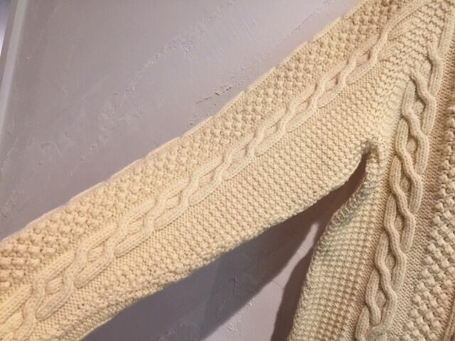 ハンドメイドで作られていて温かみもあり上品さもございます。フィッシャーマンニットでモックネックというのもポイント高いです。レディース使用なので作りも凄く大きい訳ではなく着用しやすいと思います。編み方も可愛く編み込みされています。