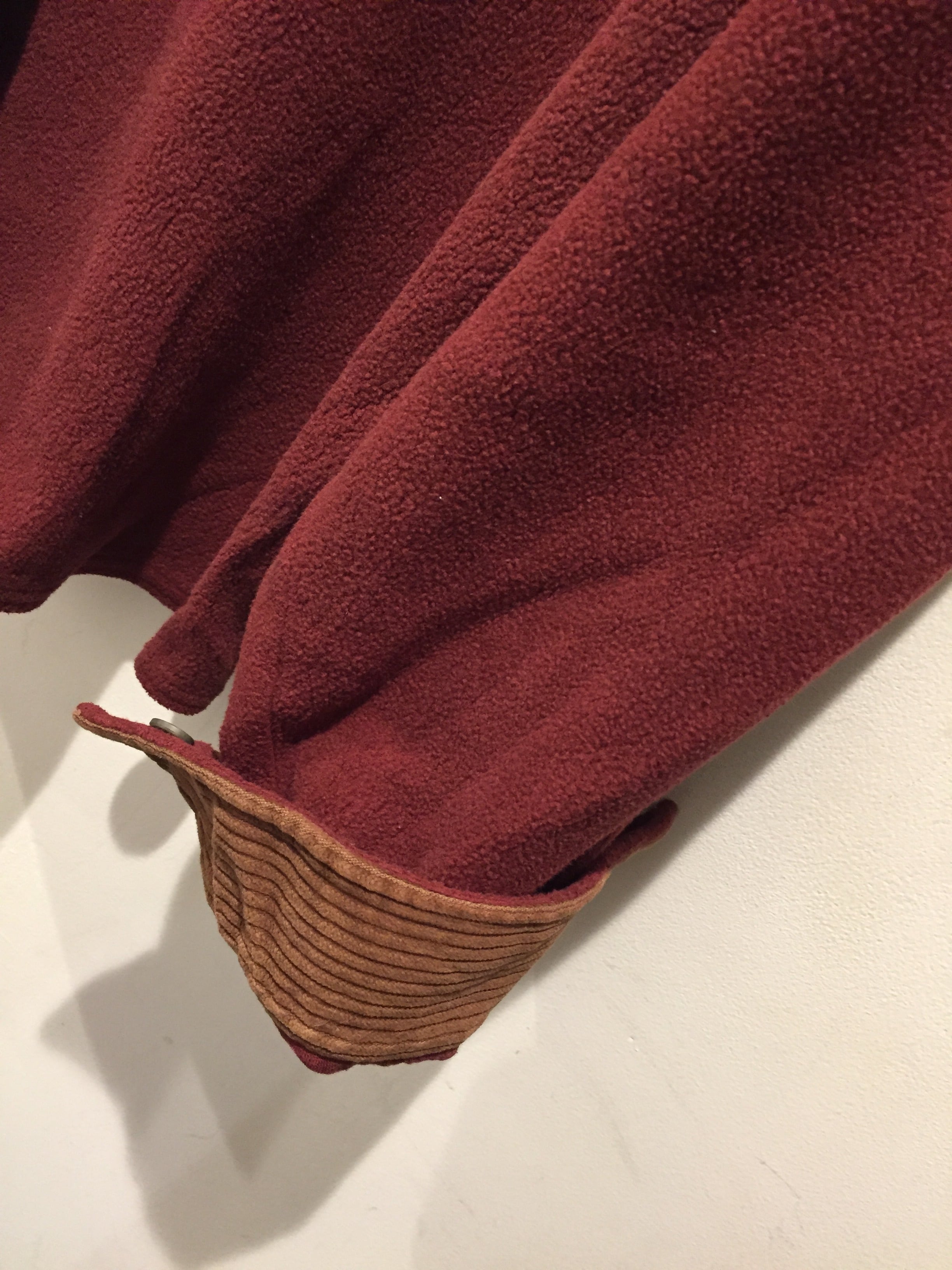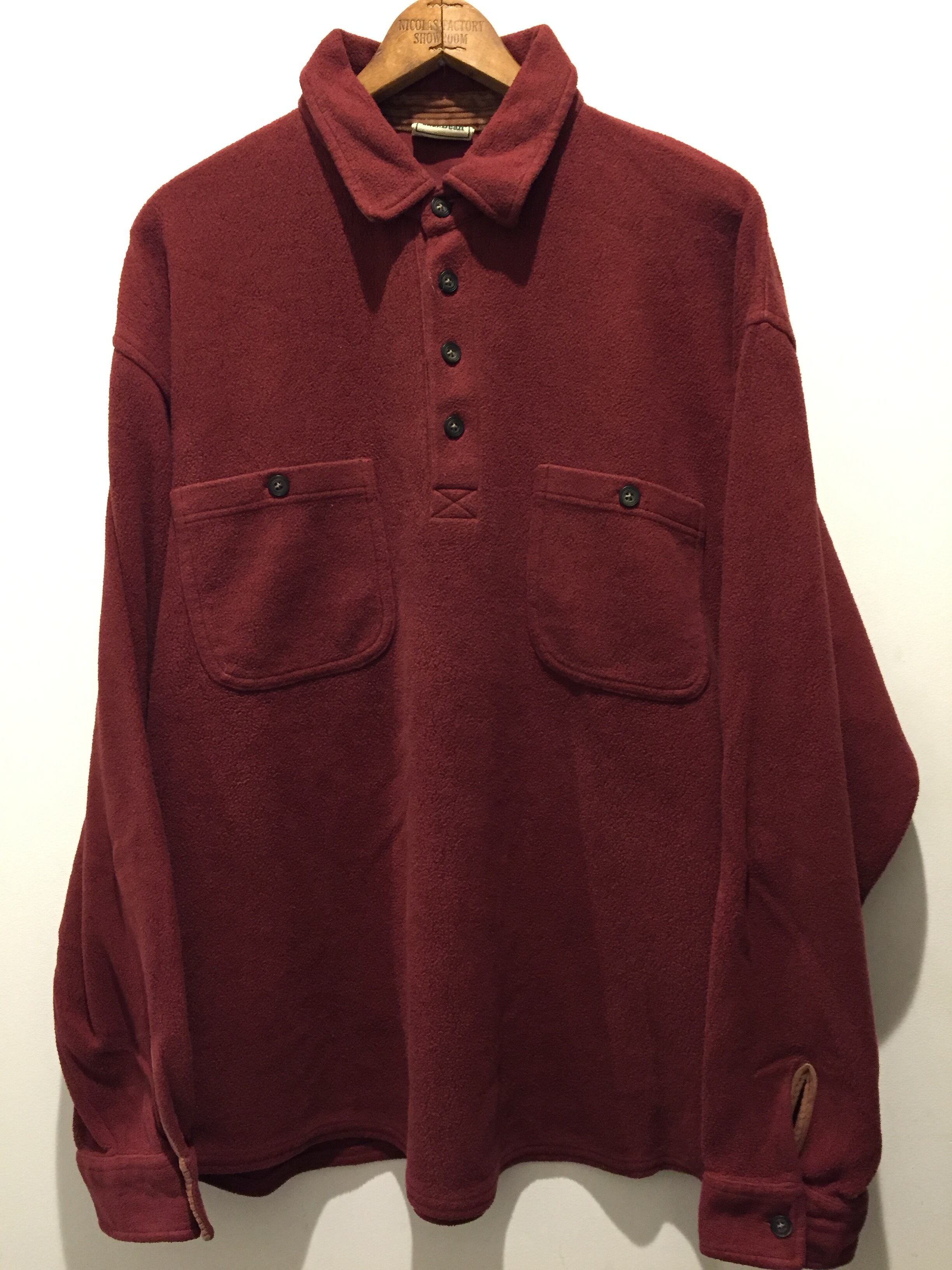 カラーはエンジです。OLDのL.L.Beanではございませんがこちらは珍しいフリースシャツとなります。プルオーバータイプで襟裏や袖裏が太畝のコーデュロイ仕様でさりげないところもお洒落で良い感じです。メインでもアウターのインナーでも大活躍な1着ですね。ゆったりめなサイズ感も良く男女ともにオススメです。