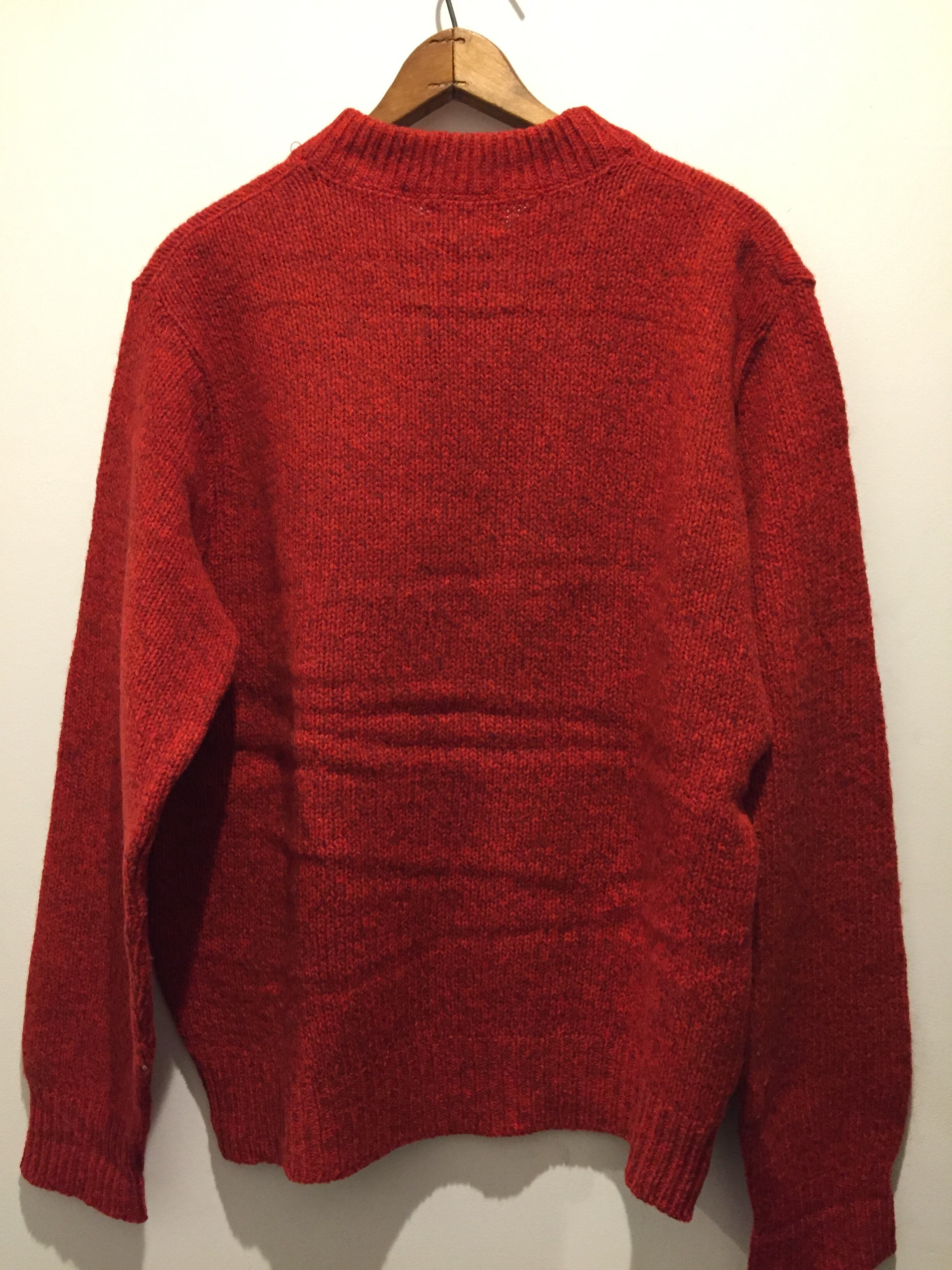 老舗ブランドL.L.Beanの物でウール×ナイロンが絶妙な質感で柔らかく着心地も良いです。カラーはレッドで濃トーンと薄いトーンが混じりとても良いカラーリングです。プレーンなタイプは意外と少なく万能なアイテムでオススメです。縮みなど無く形も綺麗で大きいサイズ感が多いなか、ジャストサイズで着用したい方にもオススメなサイズ感です。