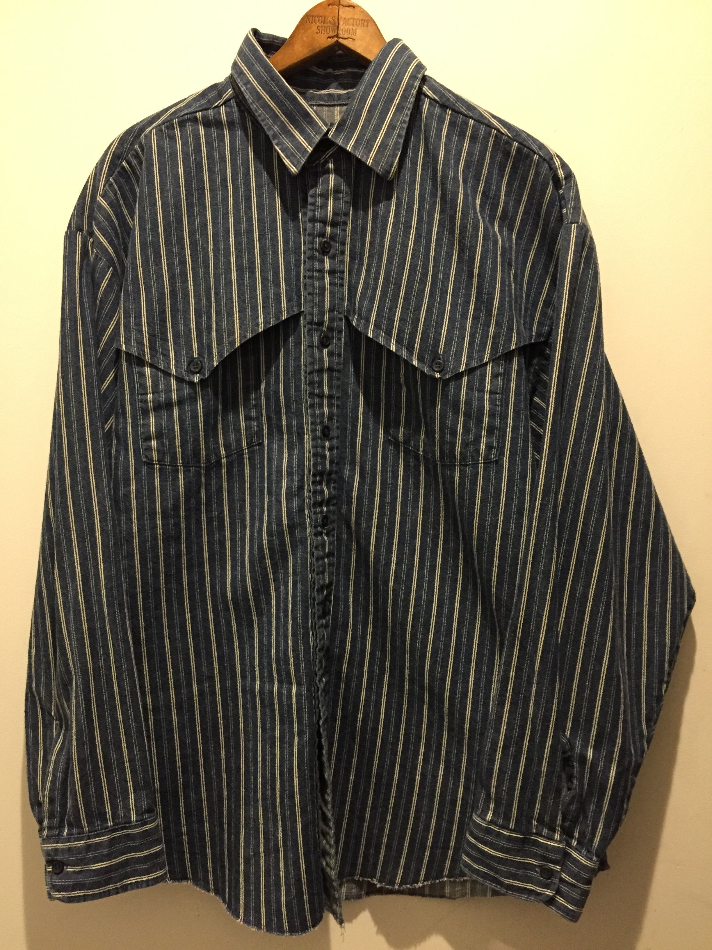 一見普通のデニムシャツですがフロント、バッグの上部が2枚仕立てになっていてお洒落+手間がかかっている1着です。ハイブランドなども真似しそうなデザインです。身幅が広めで丈が長すぎないのも着用した時にかっこいいです。アメリカ製というのも嬉しいポイントですね。