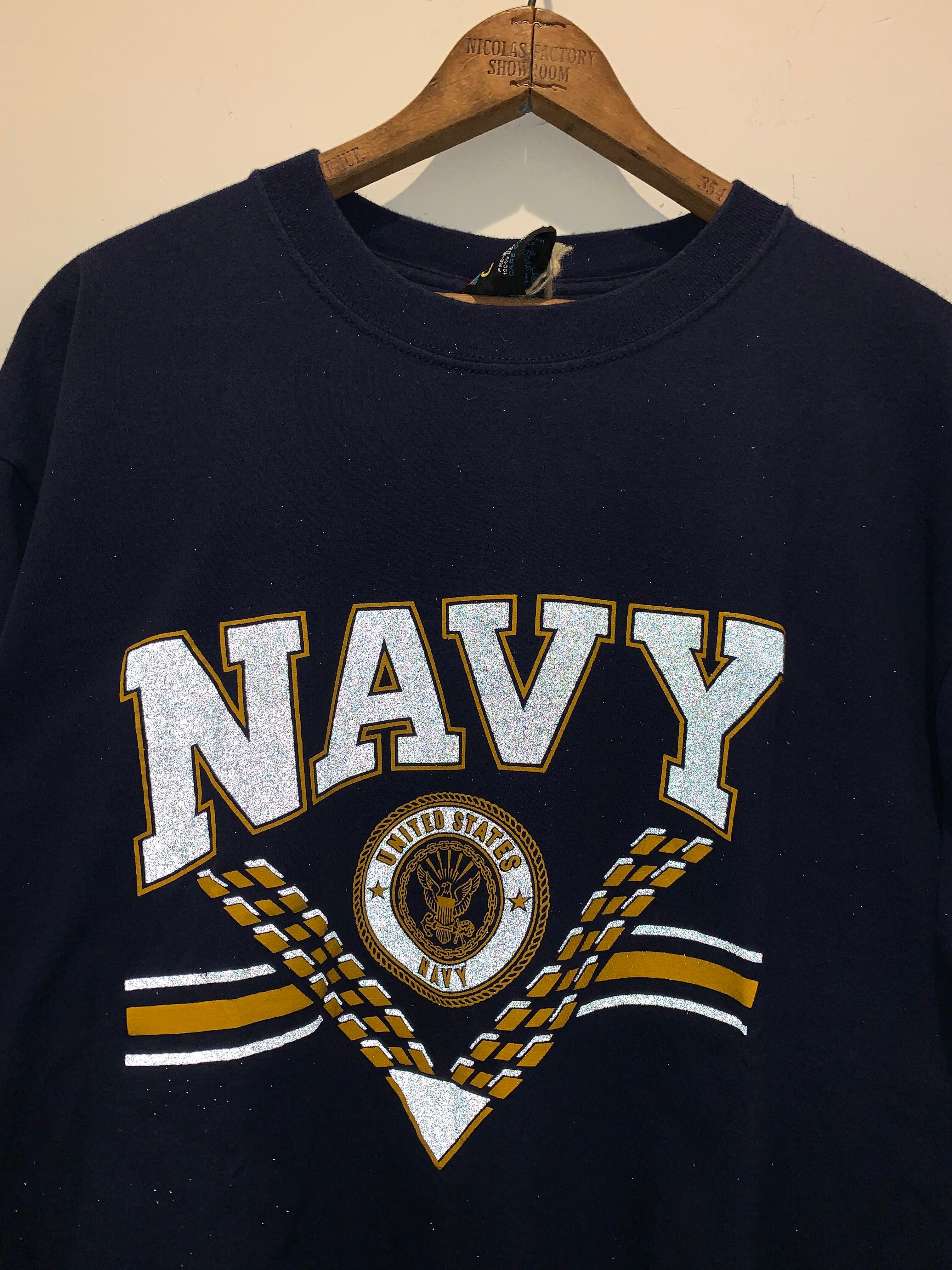 軍物ではないですがミリタリシリーズのTシャツとなります。ネイビーボディにフロントとバッグプリントがあり1枚で着用してもかっこいいです。バッグのロゴが大きめでアーチがかっているのも良いですね。またプリントはどちらもリフレクターというところもポイントです。男女問わずオススメです。