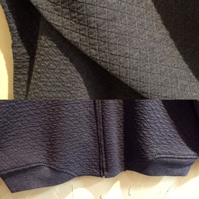 素材はスウェットとカットソーの間くらいで柔らかい素材です。表記は消えていますが紙タグ付きでYKKジップが付きます。古着で探すと意外と無くGoodレギュラーなアイテムです。フロントの裾リブも変わっていてシンプルながらデザインも凝っています。MA-1は着ている人が多いので今っぽく着用出来ますし変化球な感じでオススメです。