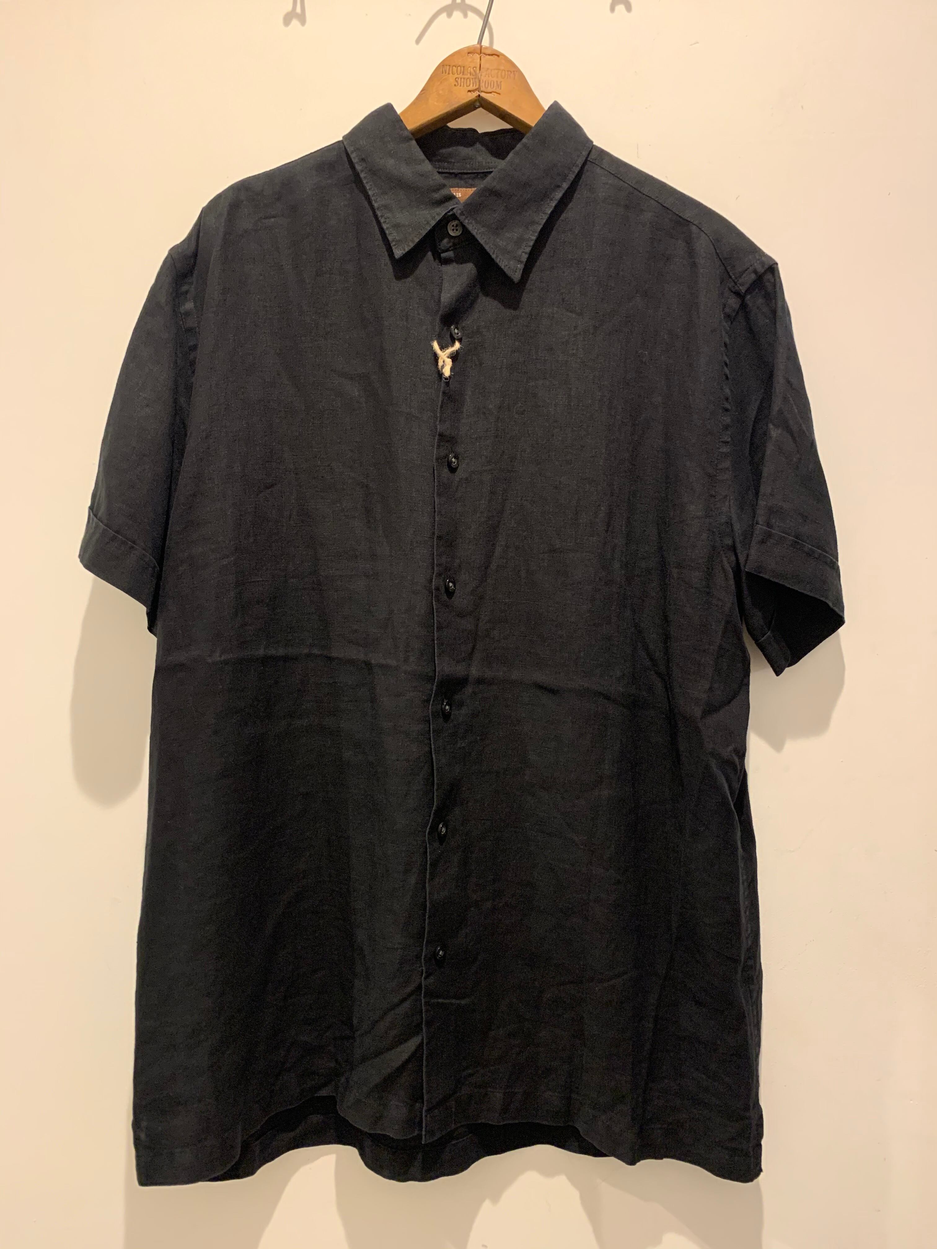 ニット、シャツ、パンツなどデザインや質の良いものが多いペリーエリス。こちらはブラックのリネンシャツとなります。ボックスシルエットにスリットが入りボタンにもしっかりロゴが入ります。また袖にループをしっかり付くあたりが物の良さを感じとれますね。ブラックカラーですがリネン素材で涼しく着用出来るのもオススメです。