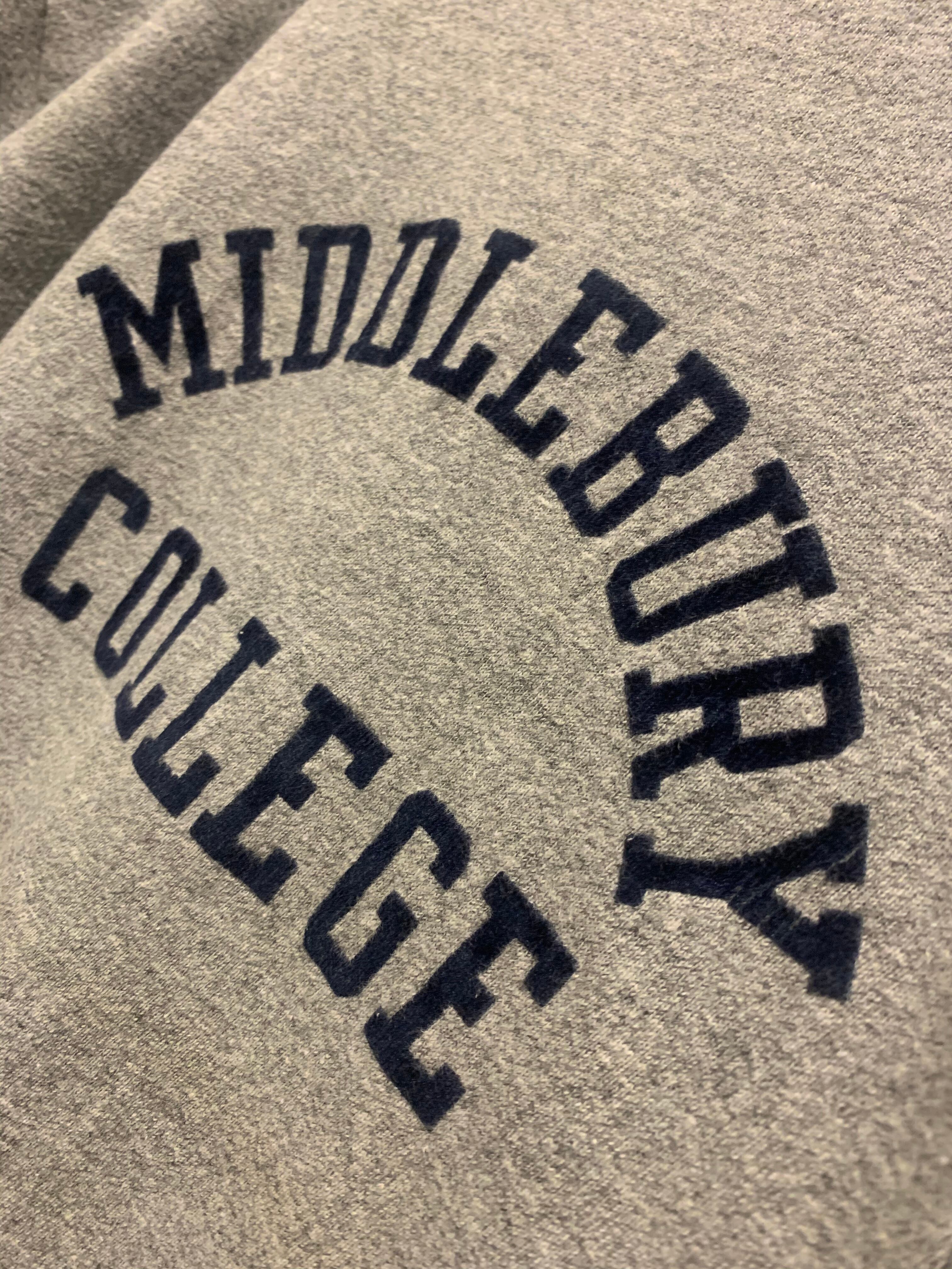 80年代トリコタグのアメリカ製チャンピオンTシャツです。ボディは霜降りグレーにネイビーのフロッキープリントです。2段でシンプルですが1段目にアーチがかっているのと、何よりフロッキープリントはなかなか見ないですね。袖、裾ともにシングルステッチで袖にマークが入らないのもシンプルで良いですね。コンディションも良くメンズも普通に着用できるサイズ感でオススメです。