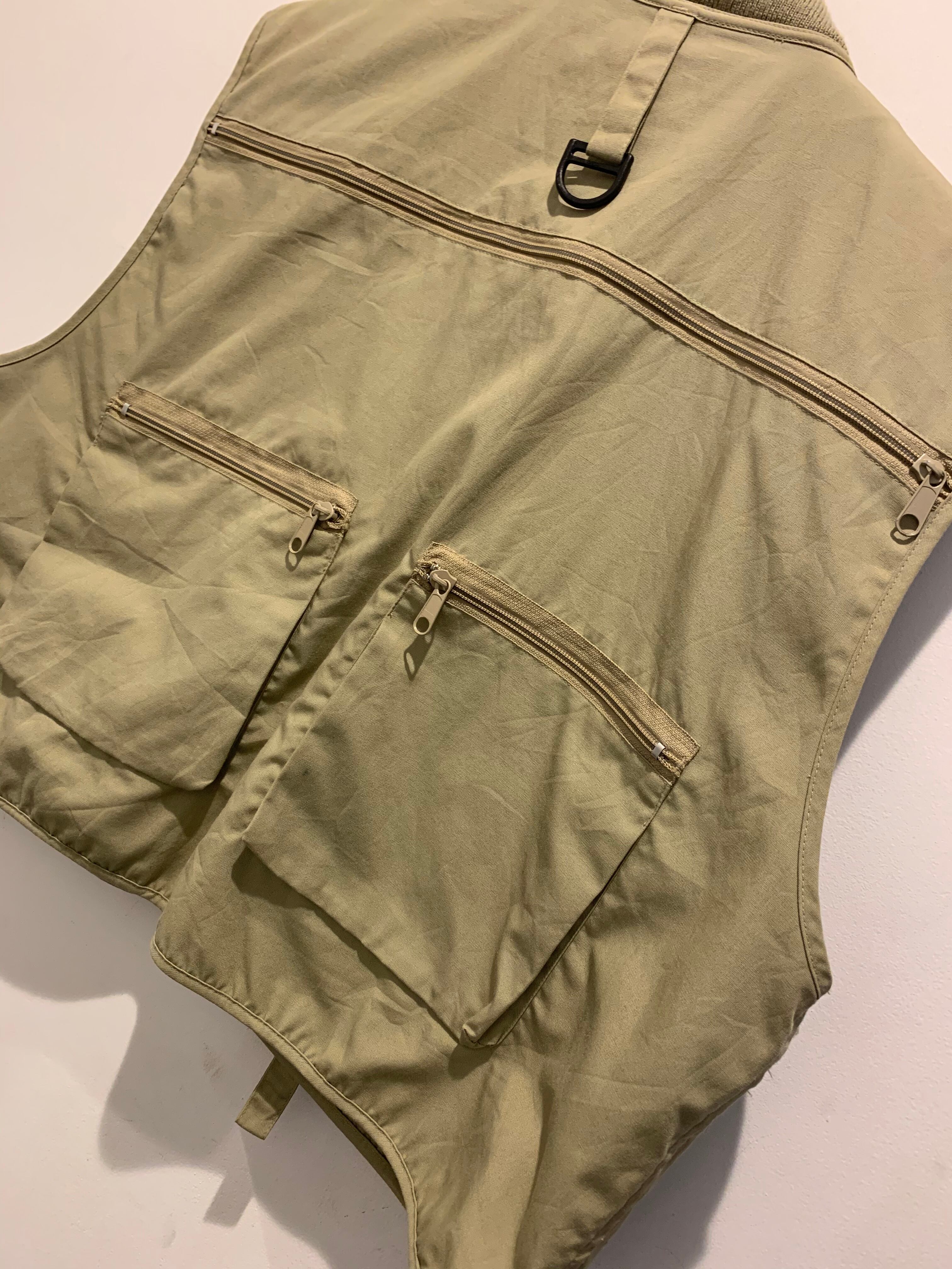 カベラスのフィッシングベストです。1961年アメリカで設立したブランドのカベラス。ハンティングアイテムを多数出しているイメージが強いブランドですね。こちらはハンティングでは無くフィッシングベストとなります。ベージュカラーに着丈短めでレイヤードしやすいアイテムです。またポケット多数のデザインが機能性も良く、収納出来るのでバッグいらずなアイテムですね。