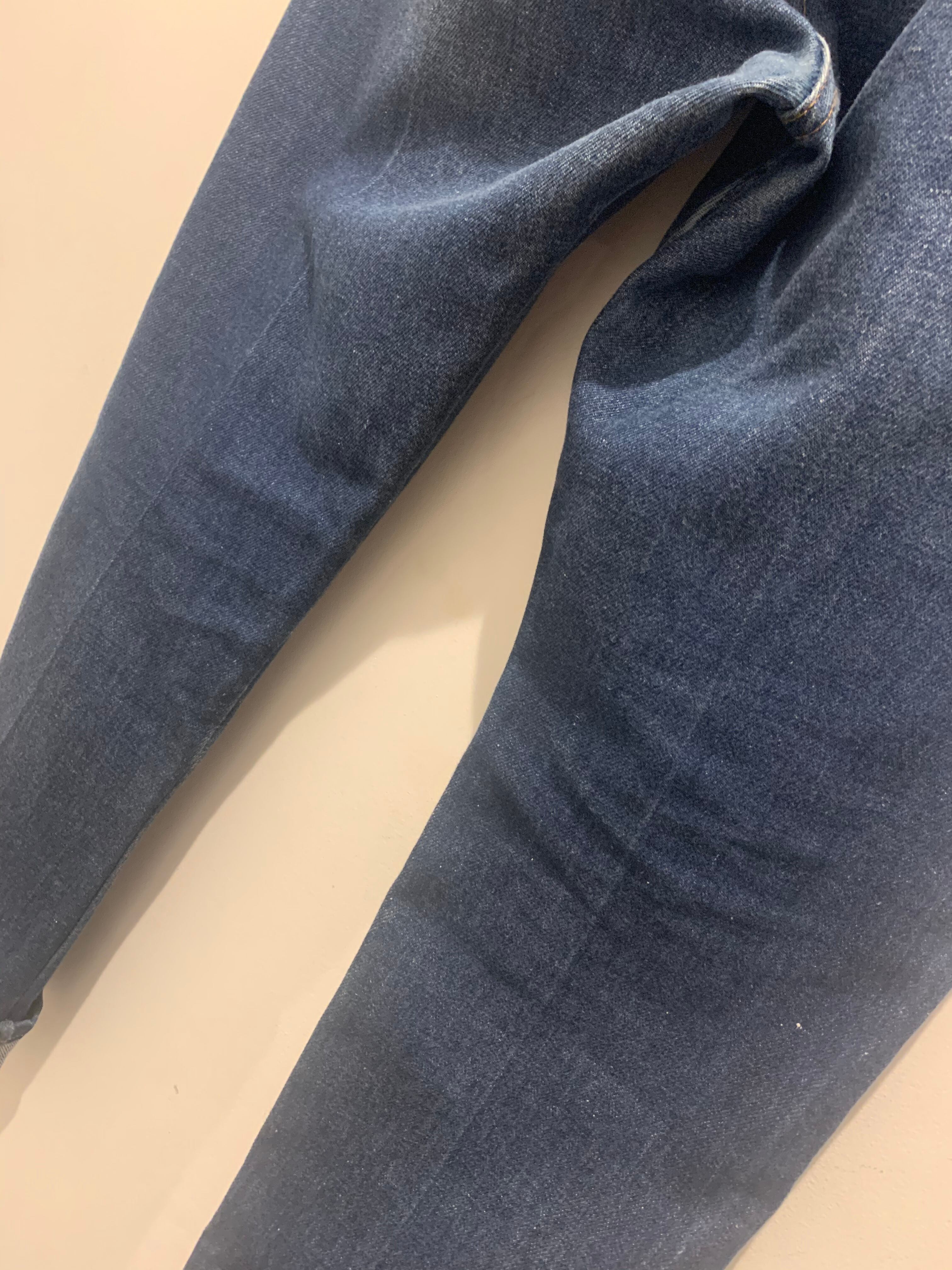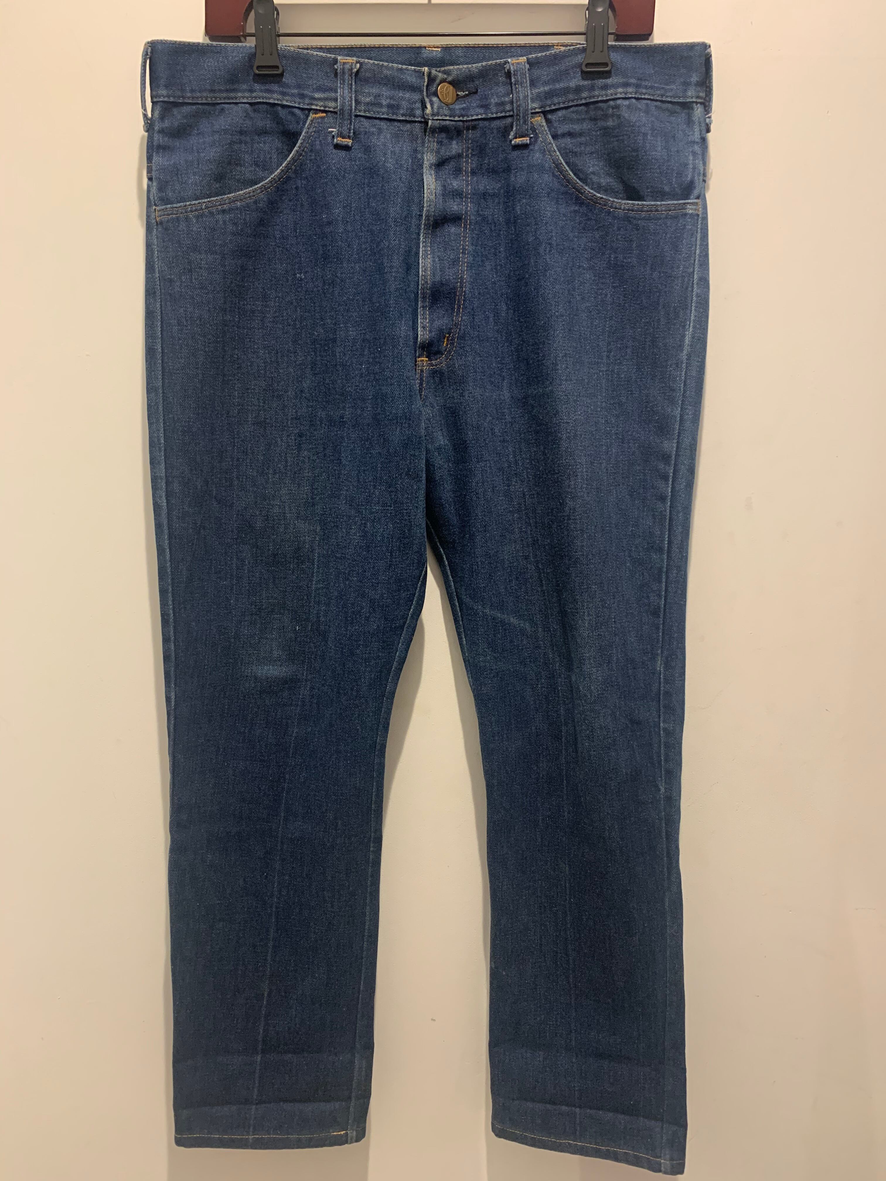 70年代アメリカ製のシアーズのデニムパンツです。少し股上が深く、テーパードシルエット、大きめのヒップポケットと形はリーバイスの505に似ています。シアーズのデニムは珍しくマイナーな分、リーバイスやLeeより玉数が少なく希少です。ジッパーはSCOVILLでトップボタンは銅で王冠のようなマークが良いですね。デニムの色も残っていて薄っすらと色落ち部分が綺麗に縦落ちしてきていてオススメです。