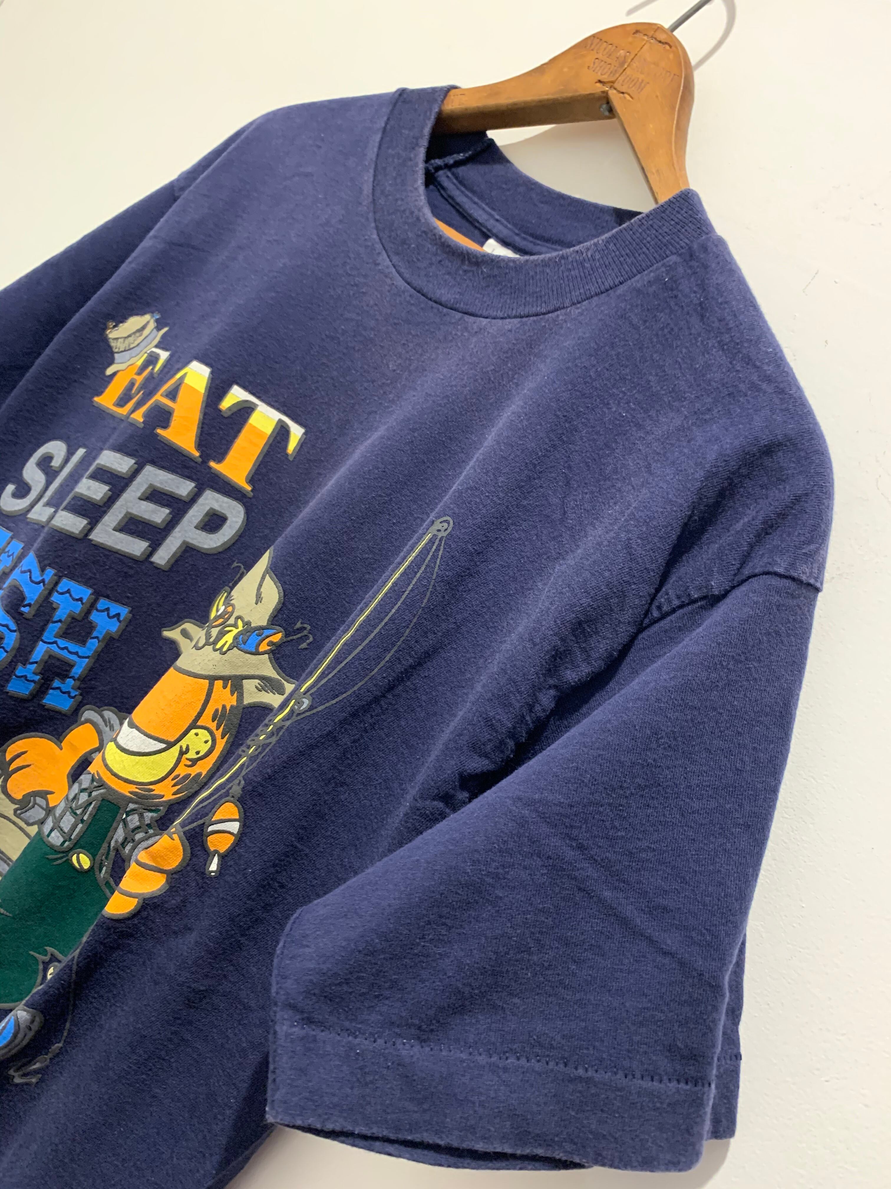 90年代のアメリカ製ガーフィールドのプリントTシャツです。アメリカで1978年に登場したガーフィールド。アメリカだけで無く全世界でも人気がありますね。こちらは90年代のフルーツのタグが付きます。ネイビーボディにお洒落な格好で釣りをしている姿が愛くるしいですね。コピーライト付きで袖、裾ともにシングルステッチとなります。老若男女問わずオススメなTシャツです。