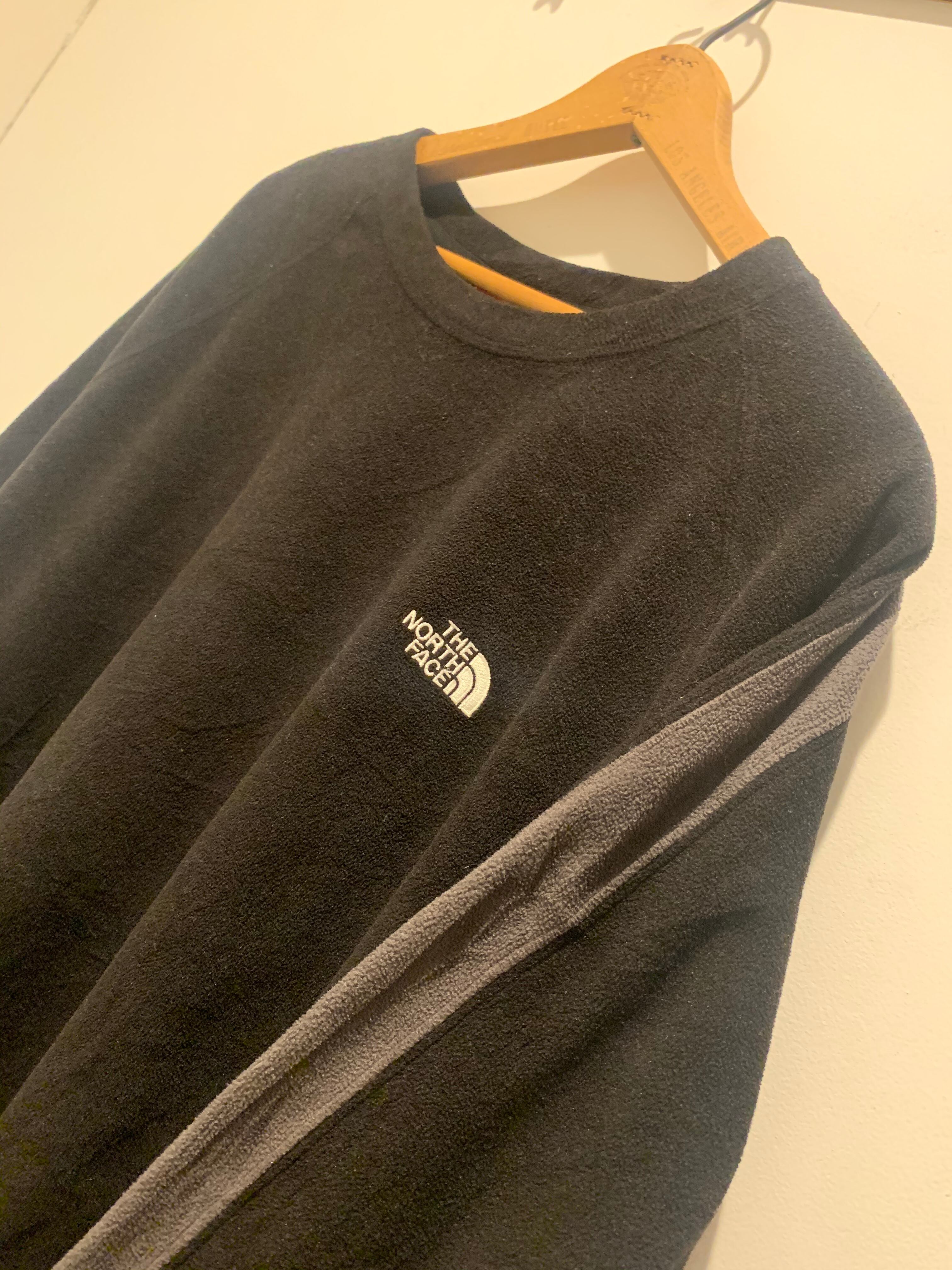 ノースフェイスのフリースです。日本の発売ではなかなか無いXXLサイズのビッグサイズのフリースです。ブラックベースに袖のグレーのラインがアクセントになっています。フルジップやハーフジップは見かけますがクルーネックのこのタイプはあまり見かけませんね。ラグランスリーブで肩周りも気にせず着用しやすいのもオススメです。