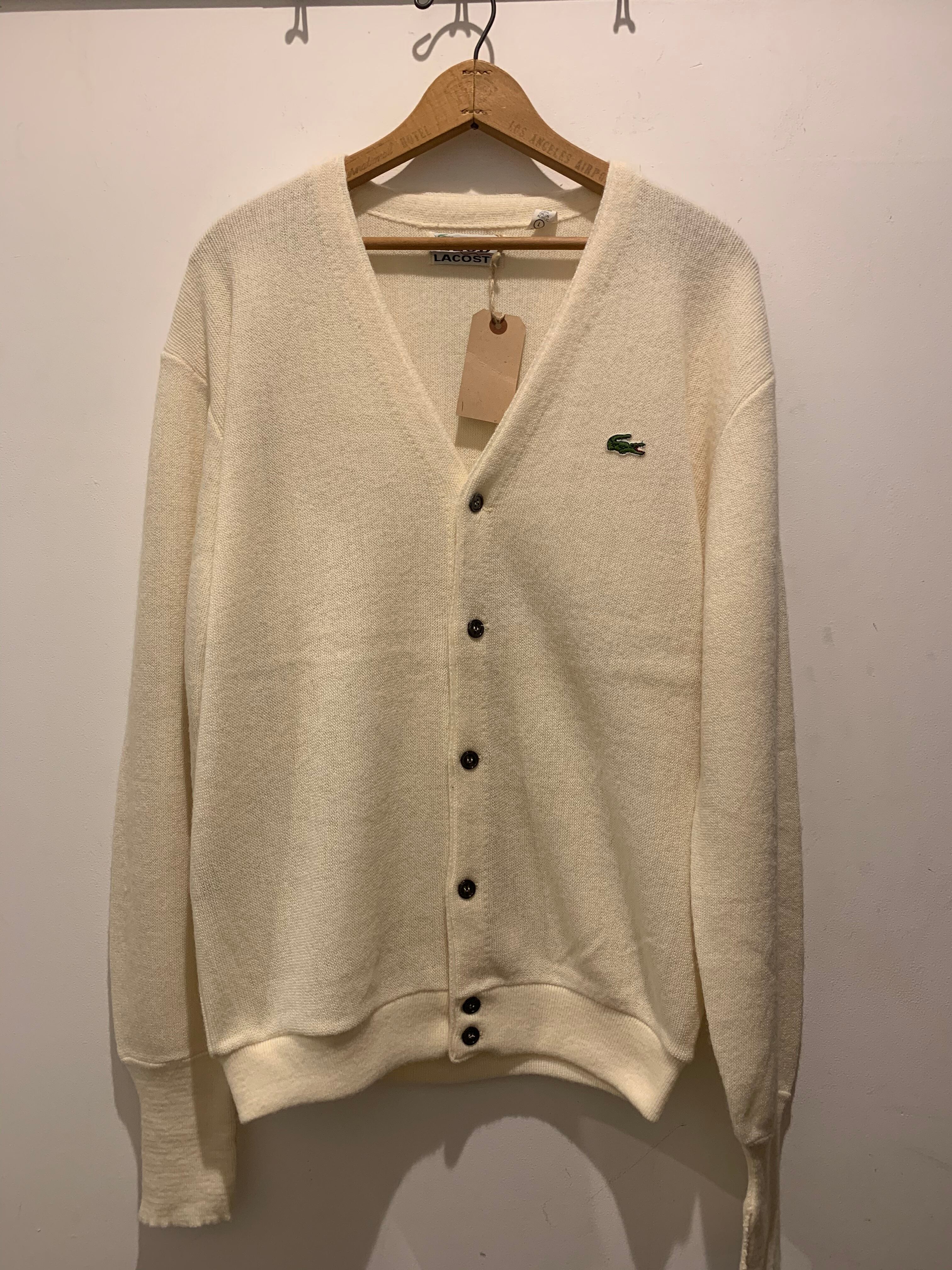 70年代アメリカ製アイゾッドラコステのカーディガンです。70年代の最も古い糸巻きタグが付くアイゾッドラコステです。現在はアイゾッドラコステは生産されていないので探している方も多いのでは無いでしょうか?白ベースのアクリルカーディガンでサラッと羽織れて便利なアイテムです。老若男女問わず着用てオススメです。