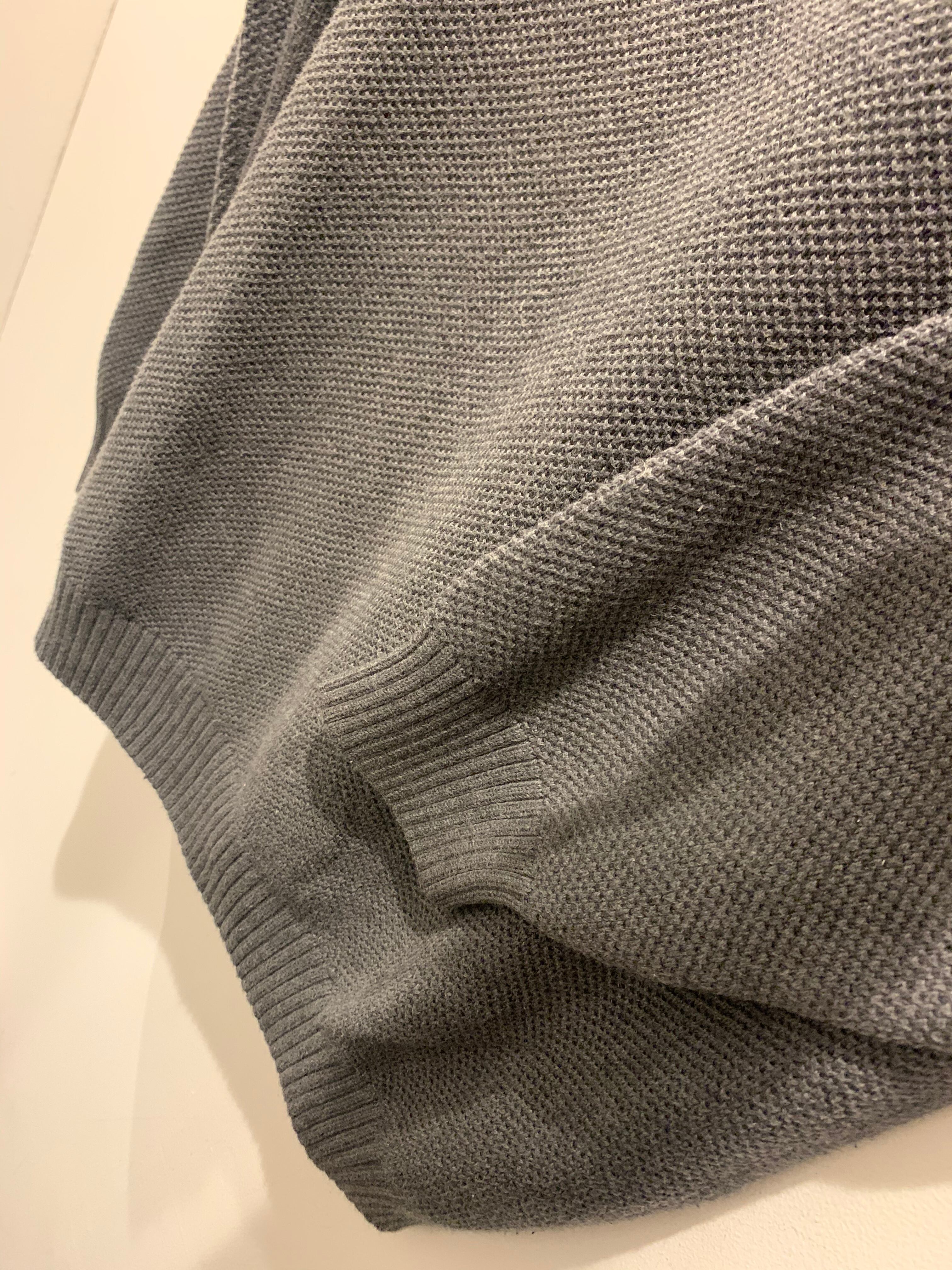 ラコステのハーフジップコットンニットです。フランス企画物でグレーカラーのハーフジップとなります。ジップの先にレザーを使ったり、凹凸の質感やフロントはセットインスリーブでバッグはラグランスリーブなど細いディティールもとても良く上質なアイテムです。サイズは2や3が主流ですがこちらは6表記と大きめサイズでゆったり目に着用したい方にはオススメなサイズ感です。コンディションも良く老若男女オススメなアイテムです。