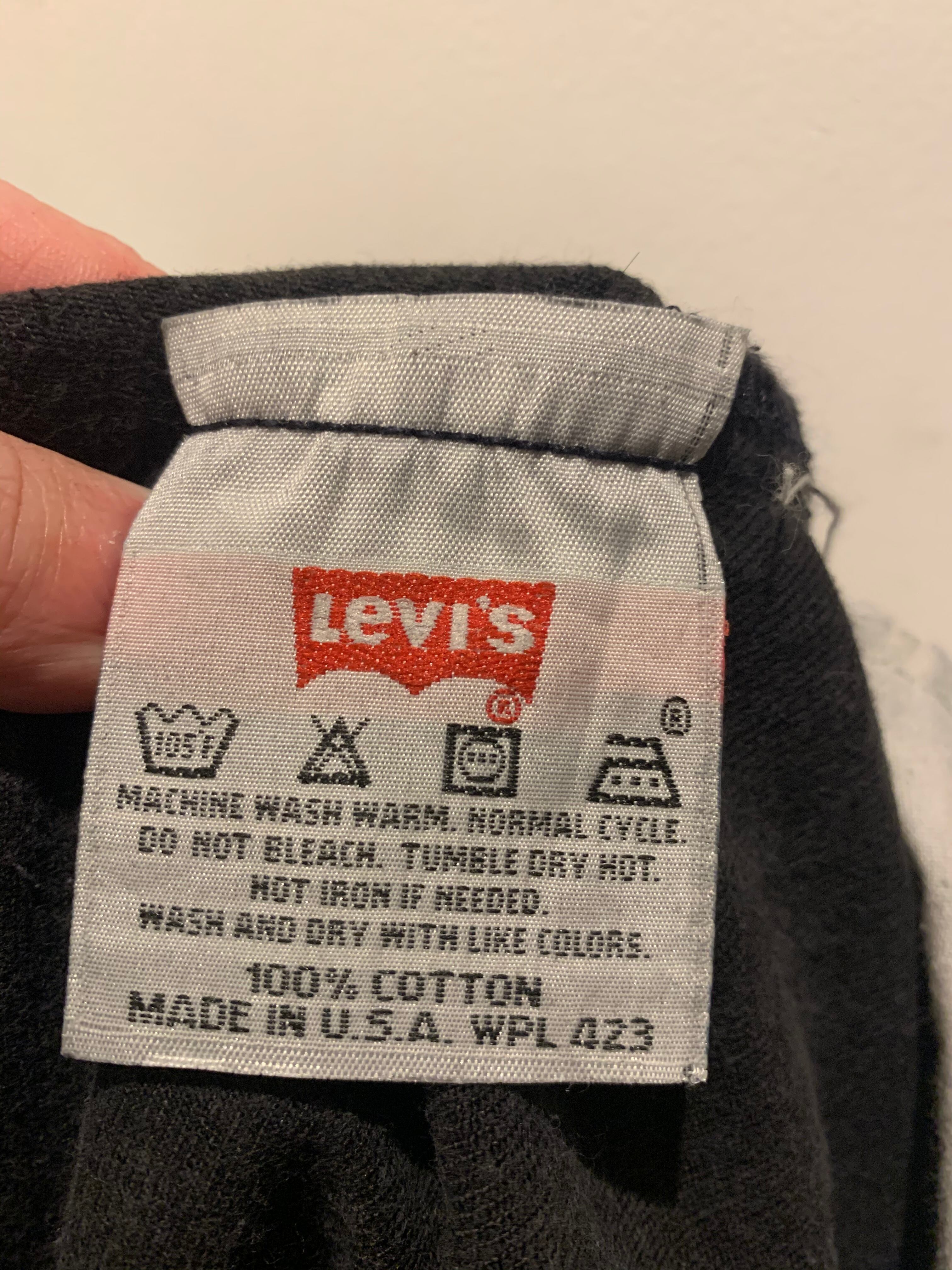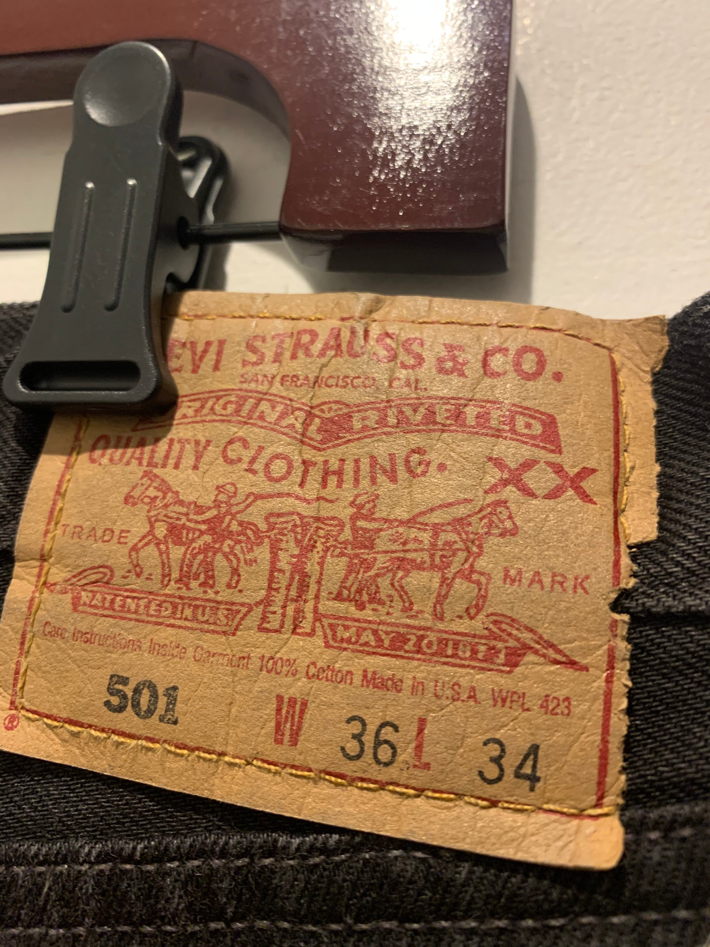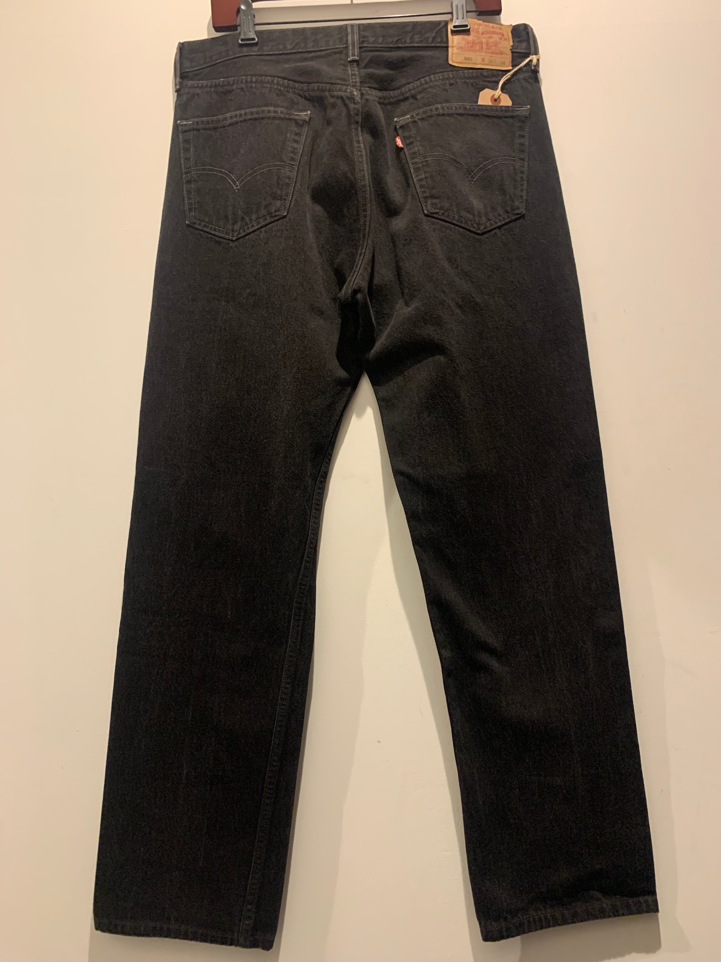 90年代アメリカ製リーバイス501ブラックデニムパンツです。1996年9月製造の物で希少になってきたアメリカ製リーバイスです。トップボタン裏は532となります。パッチ表記がW36,L34ですがウエストが33インチほどに縮んでいます。丈はまだコンディションも良い状態なので裾上げしたり切りっぱなしで履いても違和感なくいけます。履くたびに色落ちも楽しめる1本でオススメです。