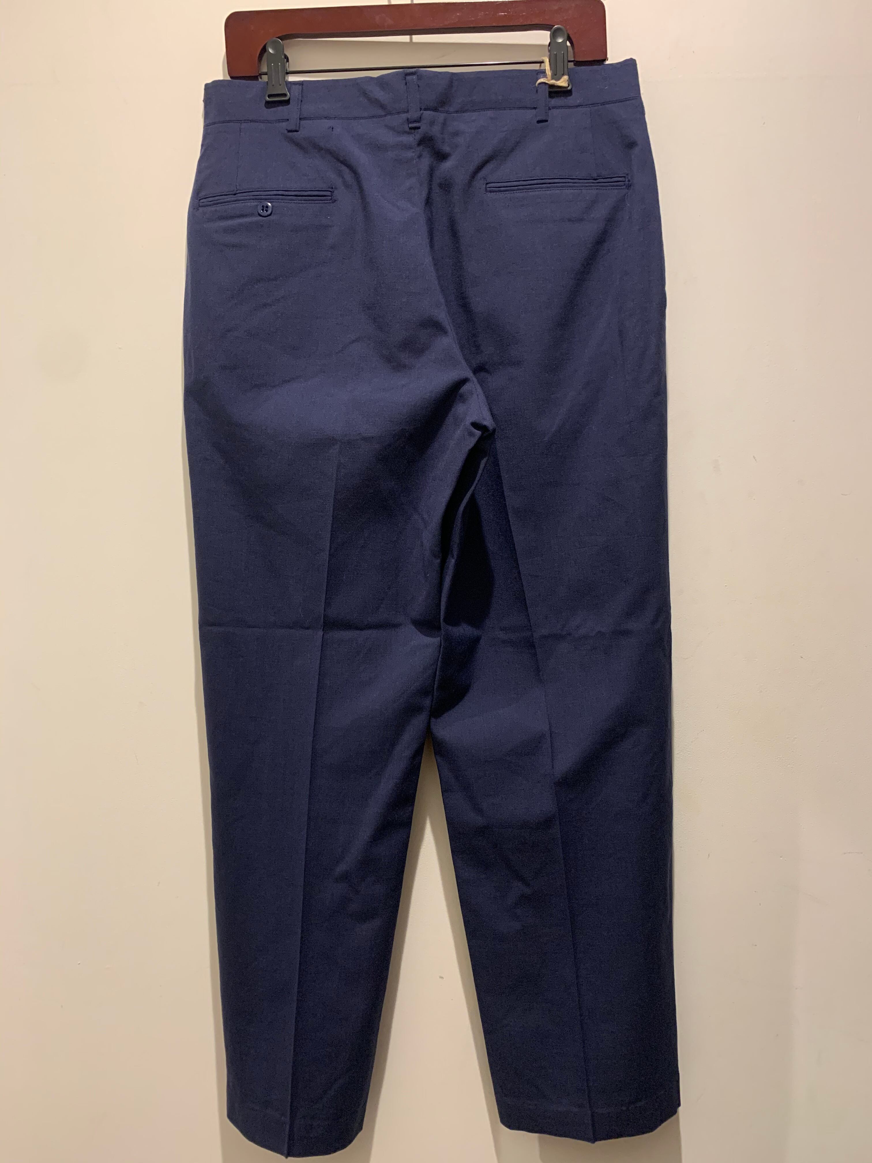 70年代アメリカ軍エア・フォースのウールトラウザーズです。1979年製でカラーはネイビーとなります。少し太めのストレートシルエットで長さがショートということもありバランスの良い1本です。ウール×ポリエステルなのでチクチクもあまりなく厚すぎない生地感で履きやすいと思います。野暮ったくなく綺麗なミリタリーパンツな印象でオススメです。