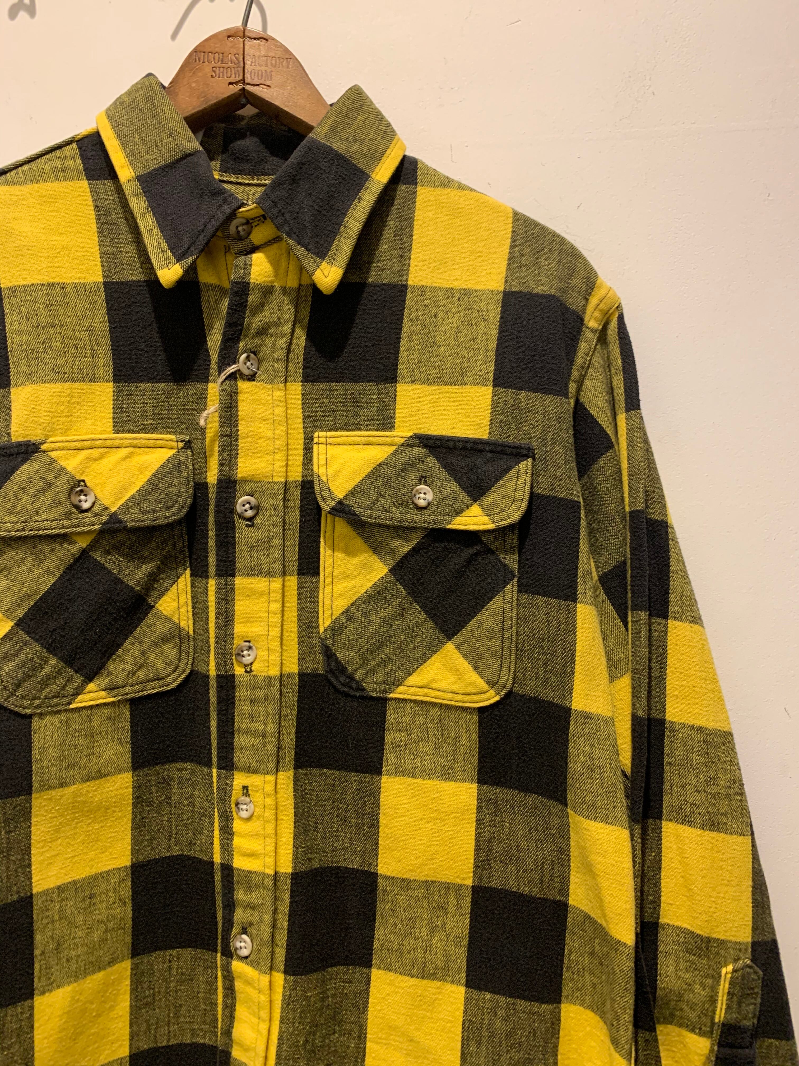 80年代アメリカ製セントジョンズベイのネルシャツです。ネルシャツではビッグマックの生地を使用する事も多いST JOHN'SBAY。赤黒や青黒は見かけますがこちらはブラック×イエローのブロックチェックでこのイエローベースは探してもなかなか無いカラーリングですね。しっかりコットン100%でアメリカ製というのもポイントです。コンディションも良くオススメなアイテムです。