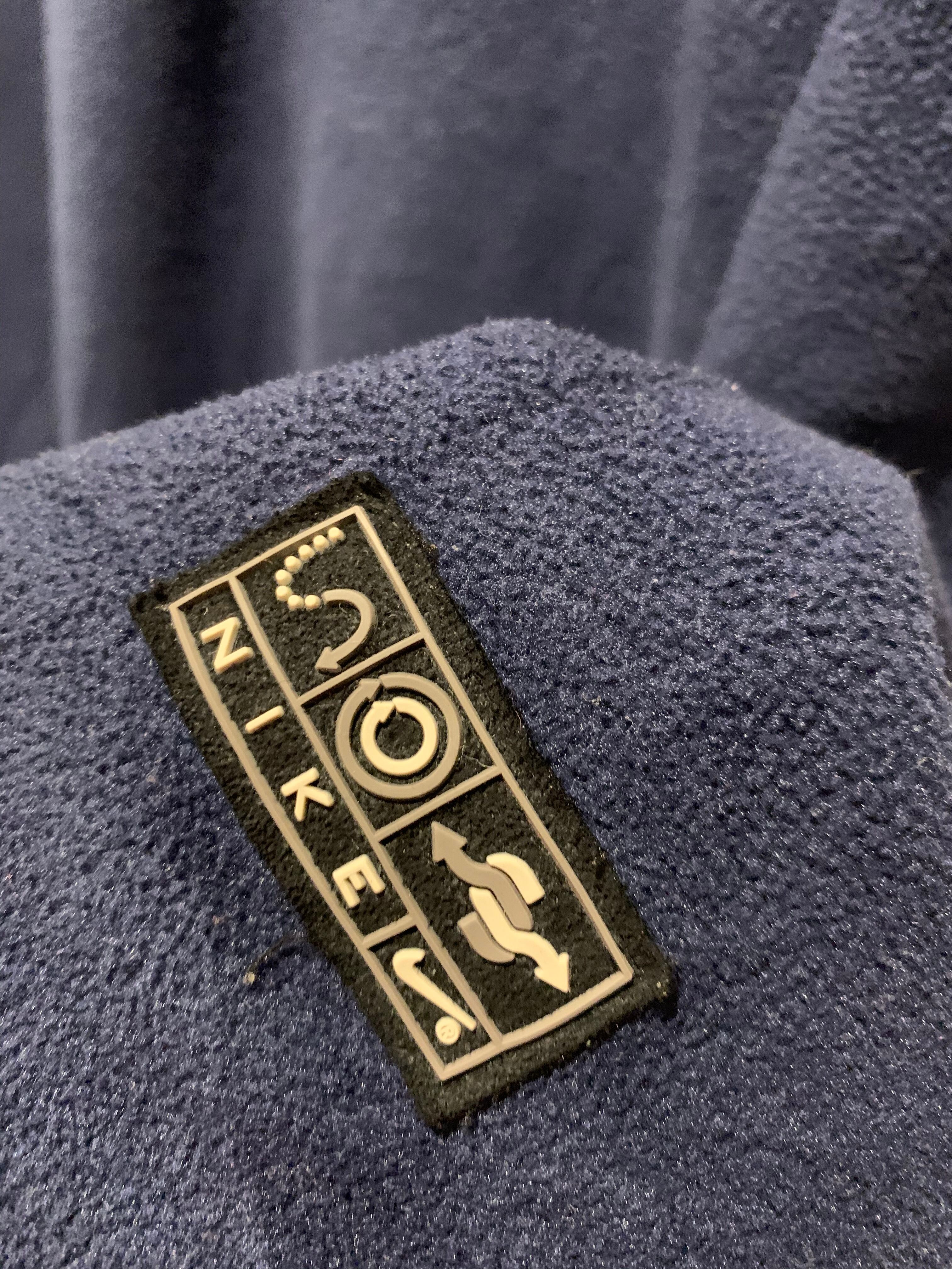 2000年代ナイキのフリースパーカーです。ネイビーカラーにシルバーのスウォッシュマークです。珍しいフリースのパーカーでハイネックで中央に縦ポケットとスウォッシュマークが付く珍しいデザインです。近年物ですがデザイン良く大きめなサイズ感でユニセックスでオススメなアイテムです。