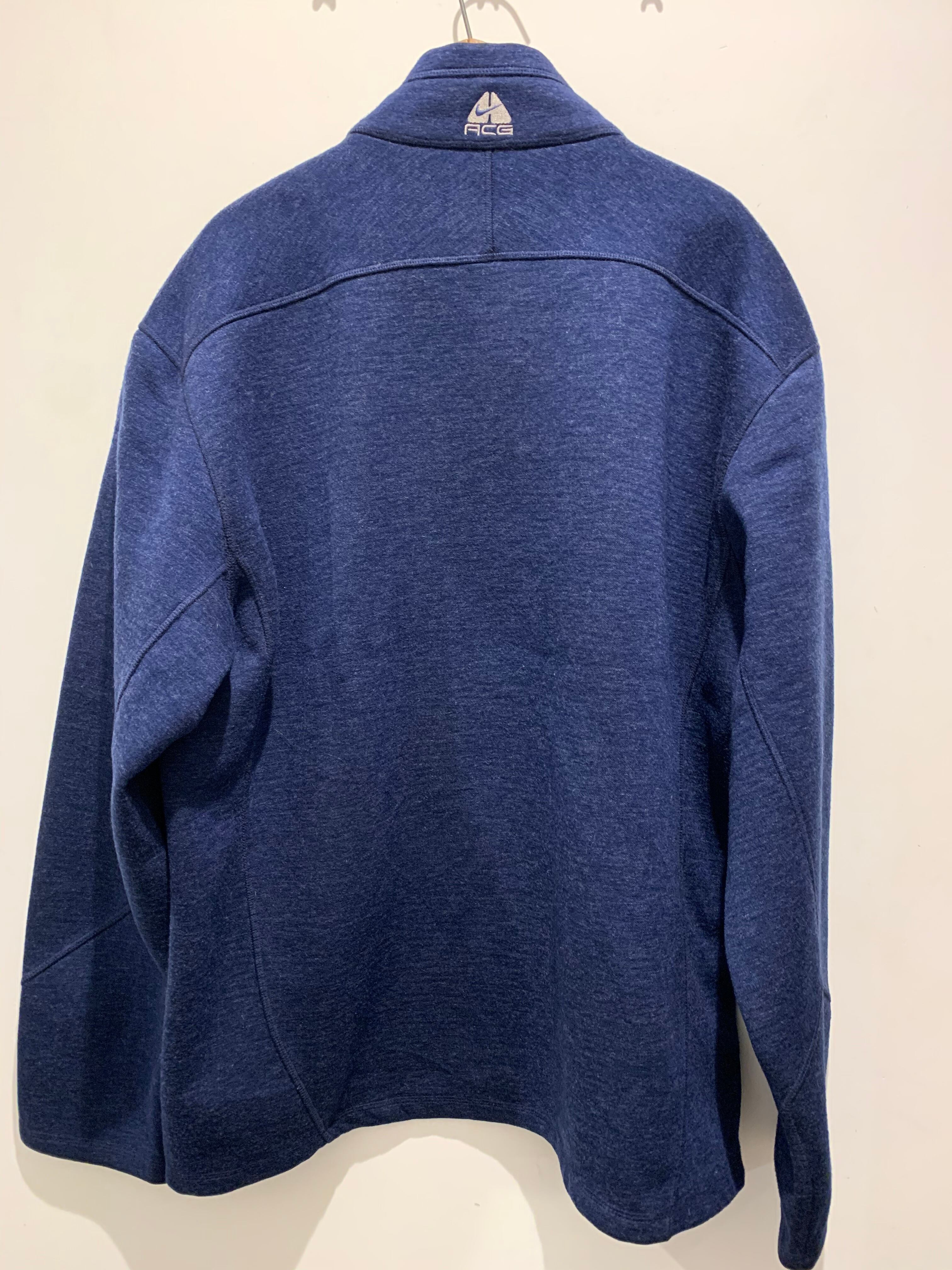 ナイキACGのフリースジャケットです。ナイキが90年代に出したラインacg(all conditions gear)。コアなファンも多いacgアイテム。こちらはフルジップのフリースタイプでネイビーカラーとなります。シンプルなデザインで胸のワンポイントと襟の後ろにマークが入るのがさりげなくて良いですね。XXLと大きめなサイズ感でコンディションも良く男女問わずオススメなアイテムです。