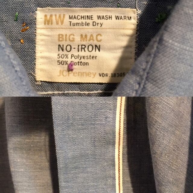 70年代らしいシャンブレー生地に華やかな刺繍が施されています。お花や蝶の刺繍は良くみますが、右袖の龍やバッグの人が描かれているのはなかなか無く珍しい1着でバランスも最高です。ボタン裏はミミ付きです。古着ならではの1点物で人とも被らなくオススメです。サイズ表記はございませんがメンズのMサイズ位です。