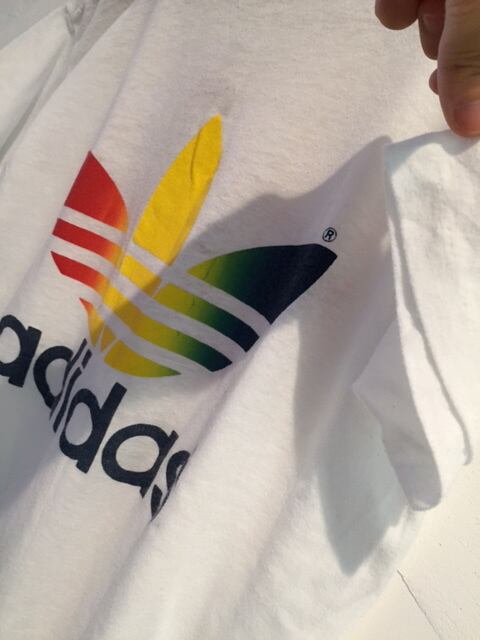 ボディカラーはホワイトです。最近少なくなってきている80年代のアメリカ製アディダスのTシャツです。バッグプリントはレインボーのトレフィルマークがあり1枚で着用してもかっこいいです。白ボディのTシャツでコンディションの良い物はなかなか無いのでオススメです。
