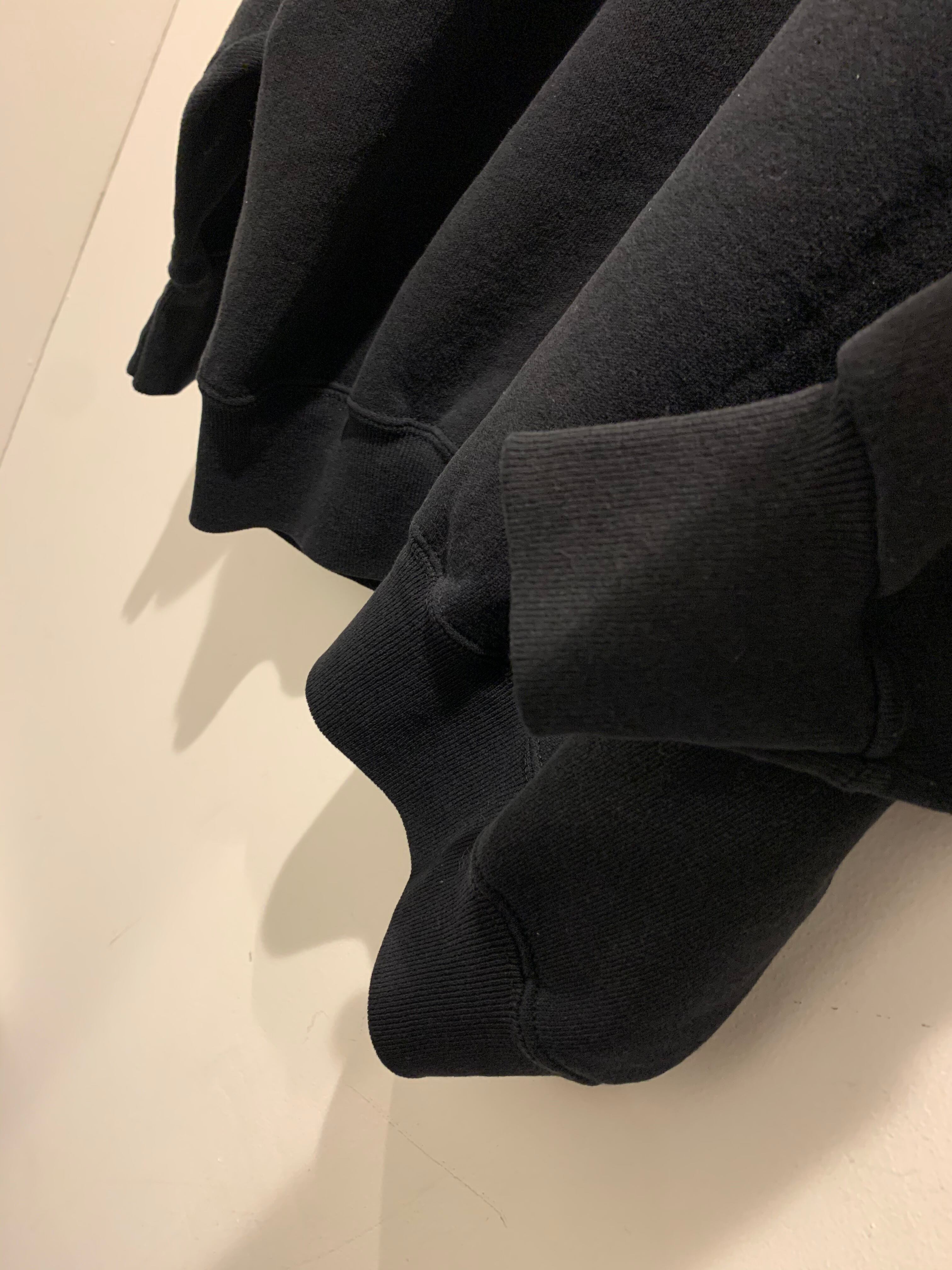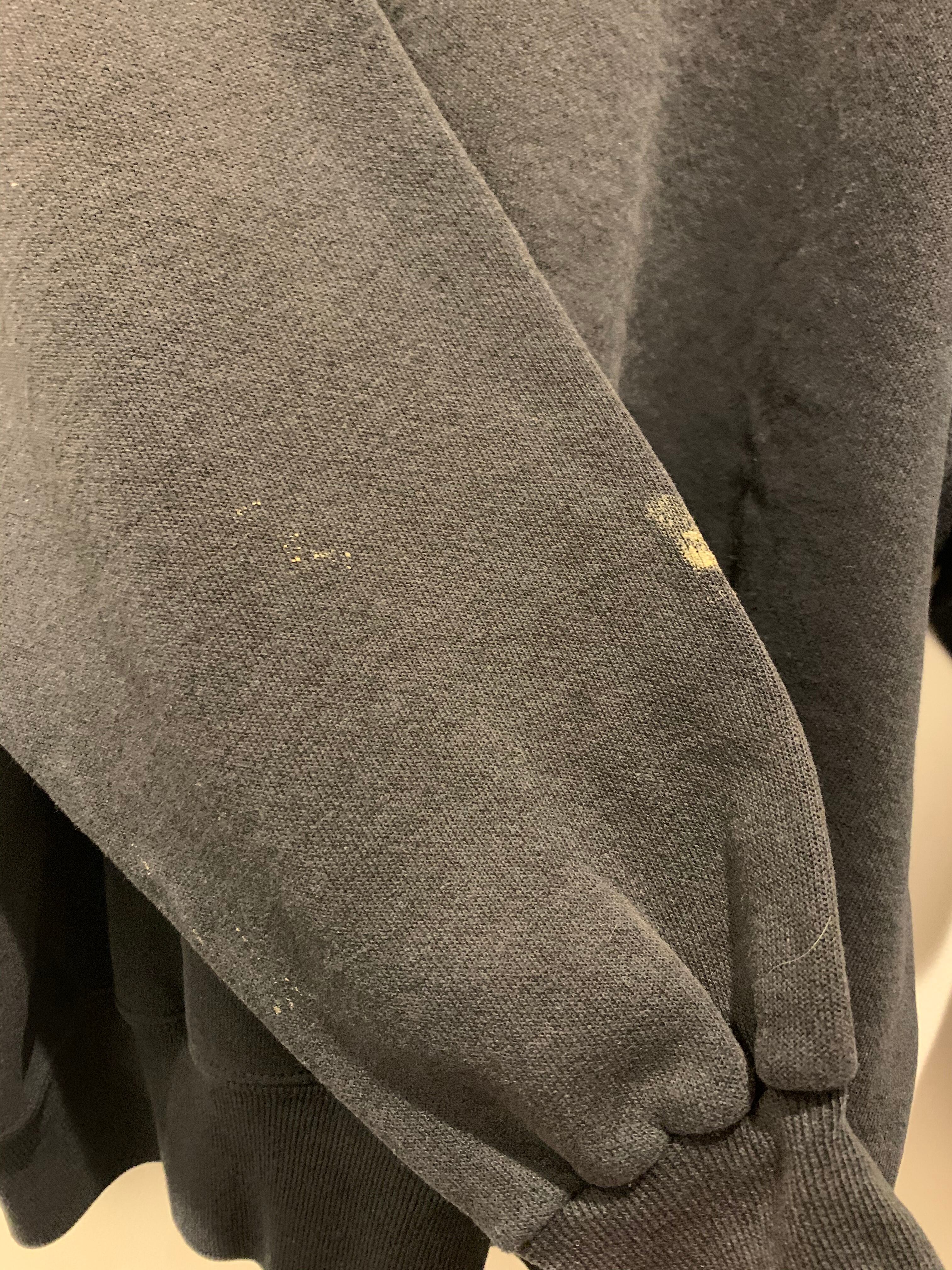 80年代アメリカ製の無地スウェットです。カラーはブラックです。所々にペンキが飛んでいて少しフェードしたブラックがとてもかっこいいです。古着ならではの少し着込まれて柔らかい質感がまた良いですね。ラグランスリーブで無地のクルーネックのシンプルな感じが使いやすくメインでもインナーとしても着れる1着です。着丈短めの幅広なシルエットで男女問わずオススメなアイテムです。