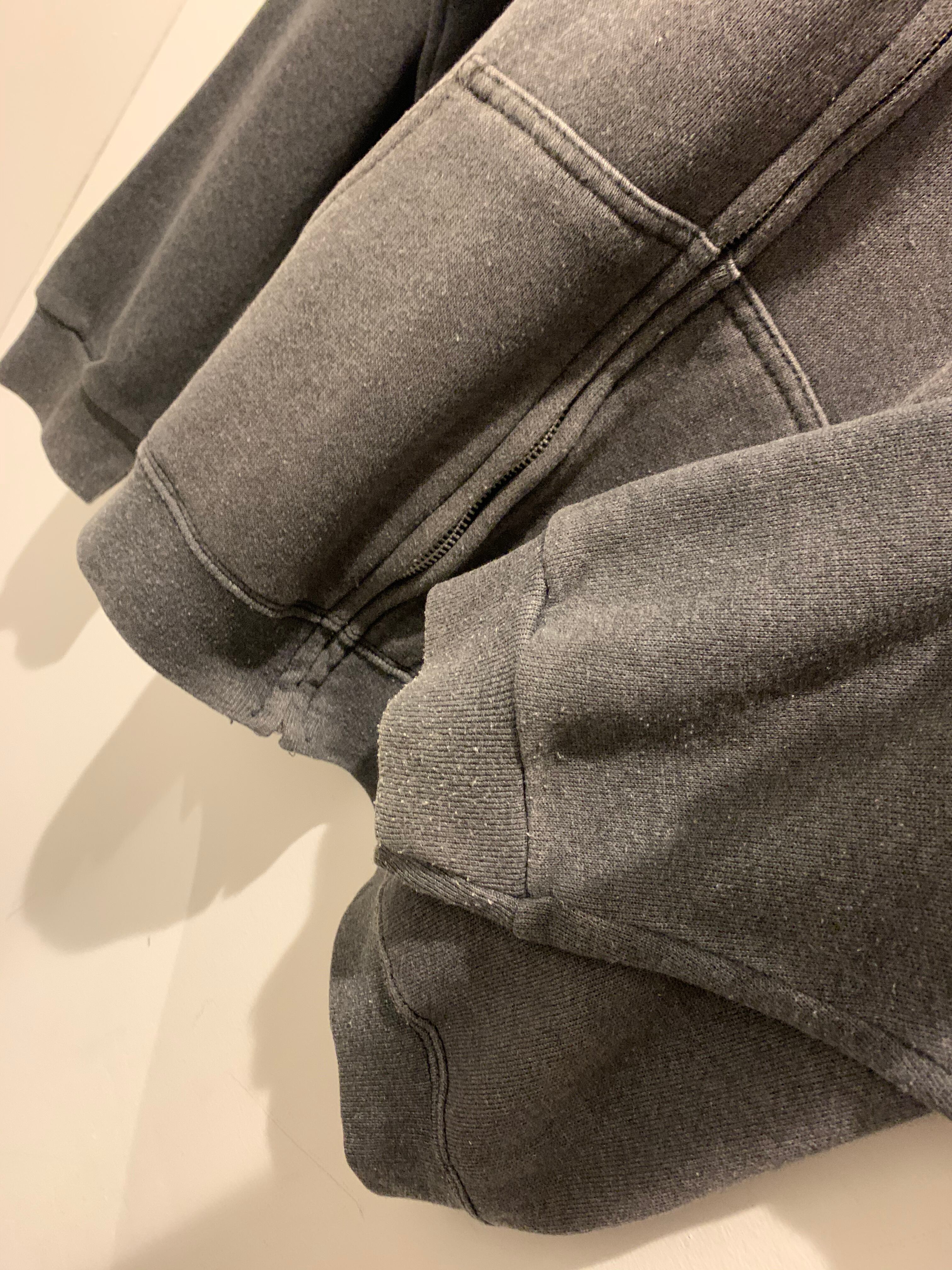 80年代アメリカ製のフルジップパーカーです。カラーはブラックが褪せてチャコールグレーのような色味となっています。また良く見ていただくと袖の部分が少し濃い目のトーンになっていてツートン仕様になっています。この辺もなかなか見つかりにくくなっていてグッドレギュラーなアイテムですね。ジップパーカーはサラッと着用できて万能なので男女問わずオススメです。