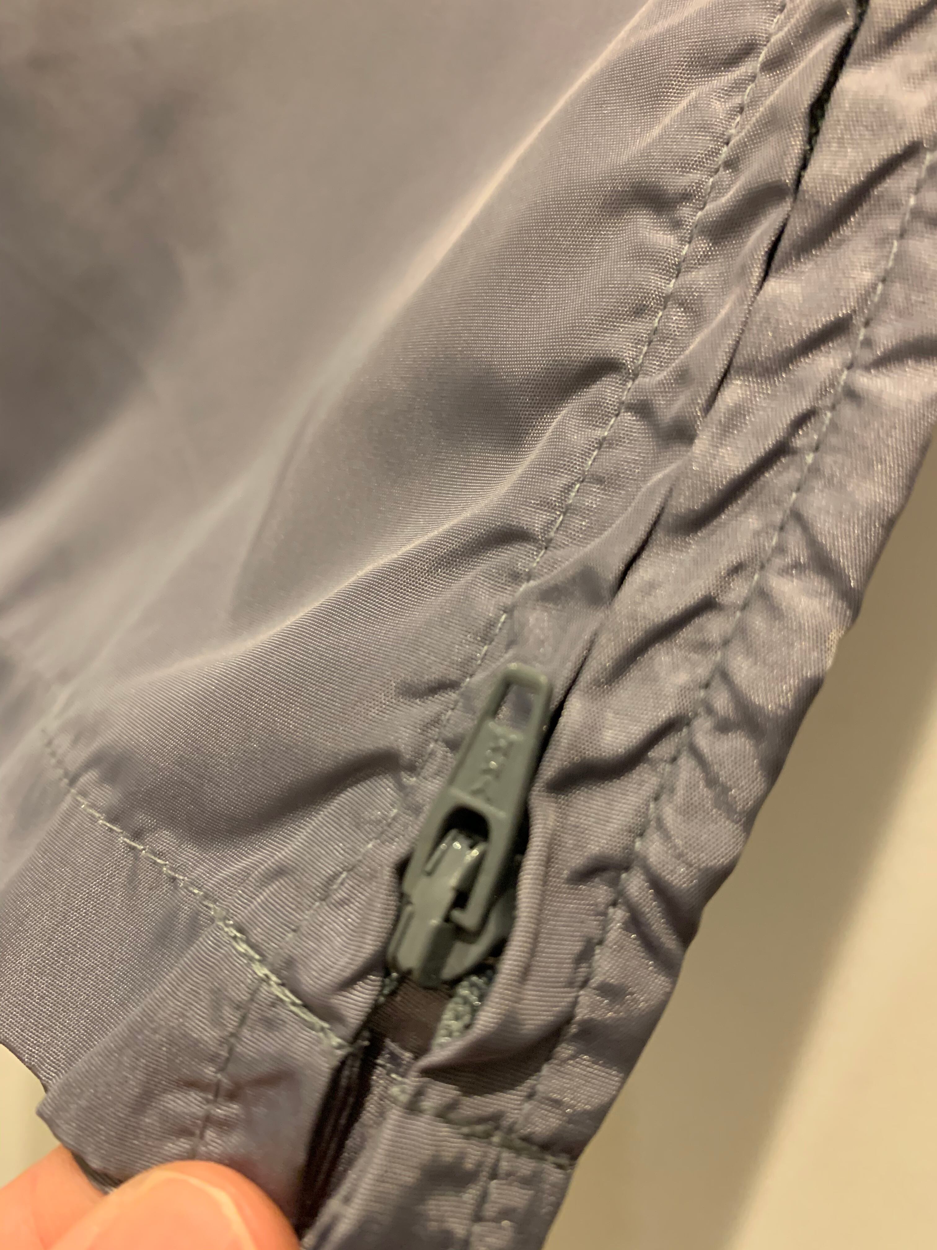 80年代ナイキのナイロンパンツです。通称「紺タグ」が付く80年代のOLD NIKEです。グレーカラーに白のロゴとシンプルですが太めのシルエットがとても良く、コーディネートの外しとしても使えるアイテムです。ウエストはゴム+紐付きでサイズ調整可能なうえに履きやすくなっています。裾にはYKKジッパーが付きでコンディションも良くオススメな1本です。