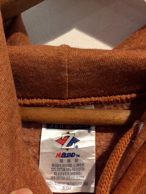 カラーは旬な『テラコッタ』です。無地のタイプですが、フード、袖は濃い色でツートンのタイプで珍しいです。裏地も起毛タイプでフカフカして着心地も最高です。年代はそこまで古くは無いですがなかなか出て来ないのでイチオシです。