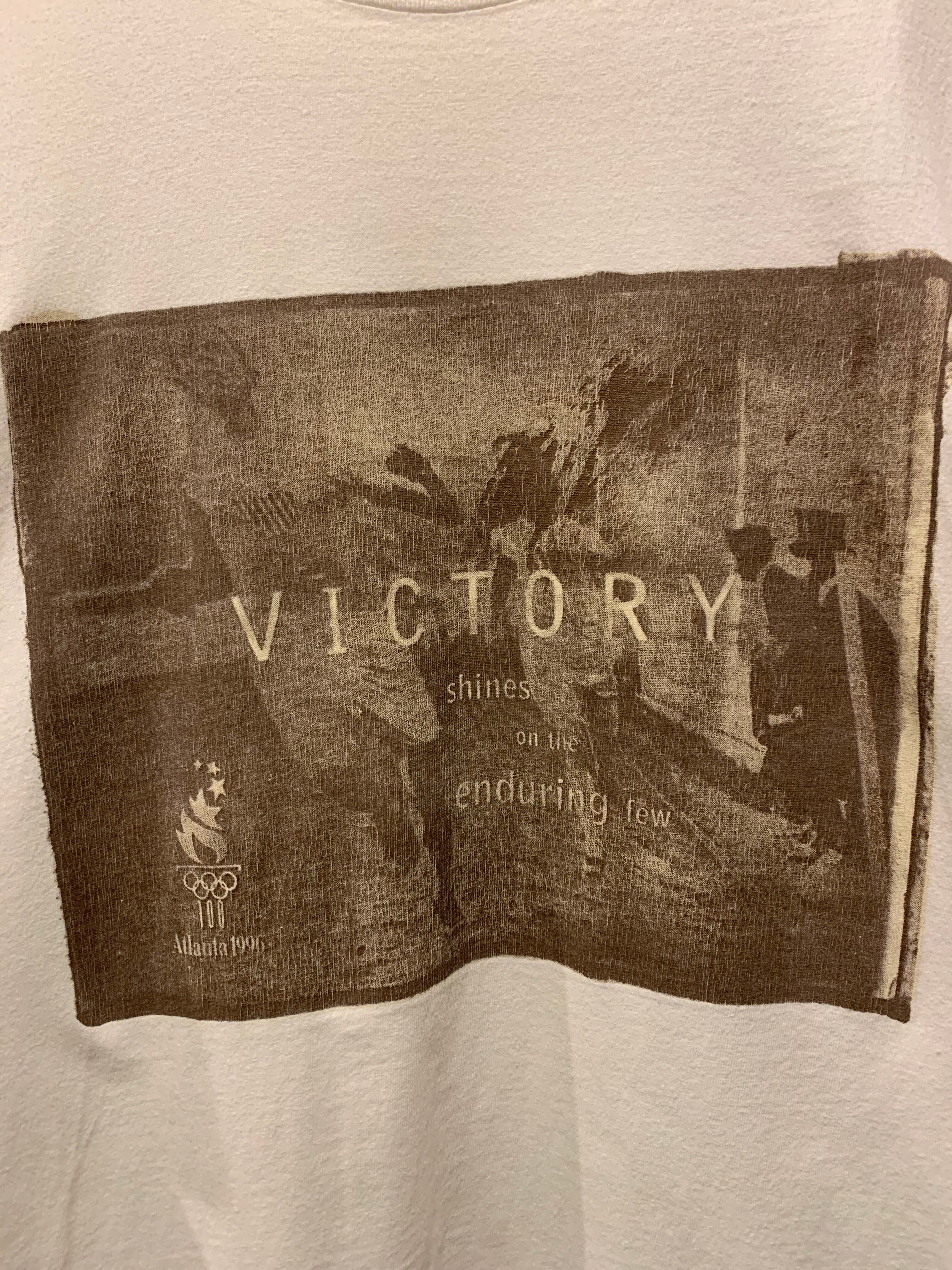 90年代アメリカ製チャンピオンのTシャツです。1996年アトランタオリンピックの時のチャンピオンのTシャツで珍しい1着です。白ボディにセピアカラーのフォトプリントがとても良く良いデザインですね。袖、裾共にシングルステッチで袖に目マークが付きます。白ボディですがコンディションも良く大きめなサイズ感でユニセックスでオススメです。