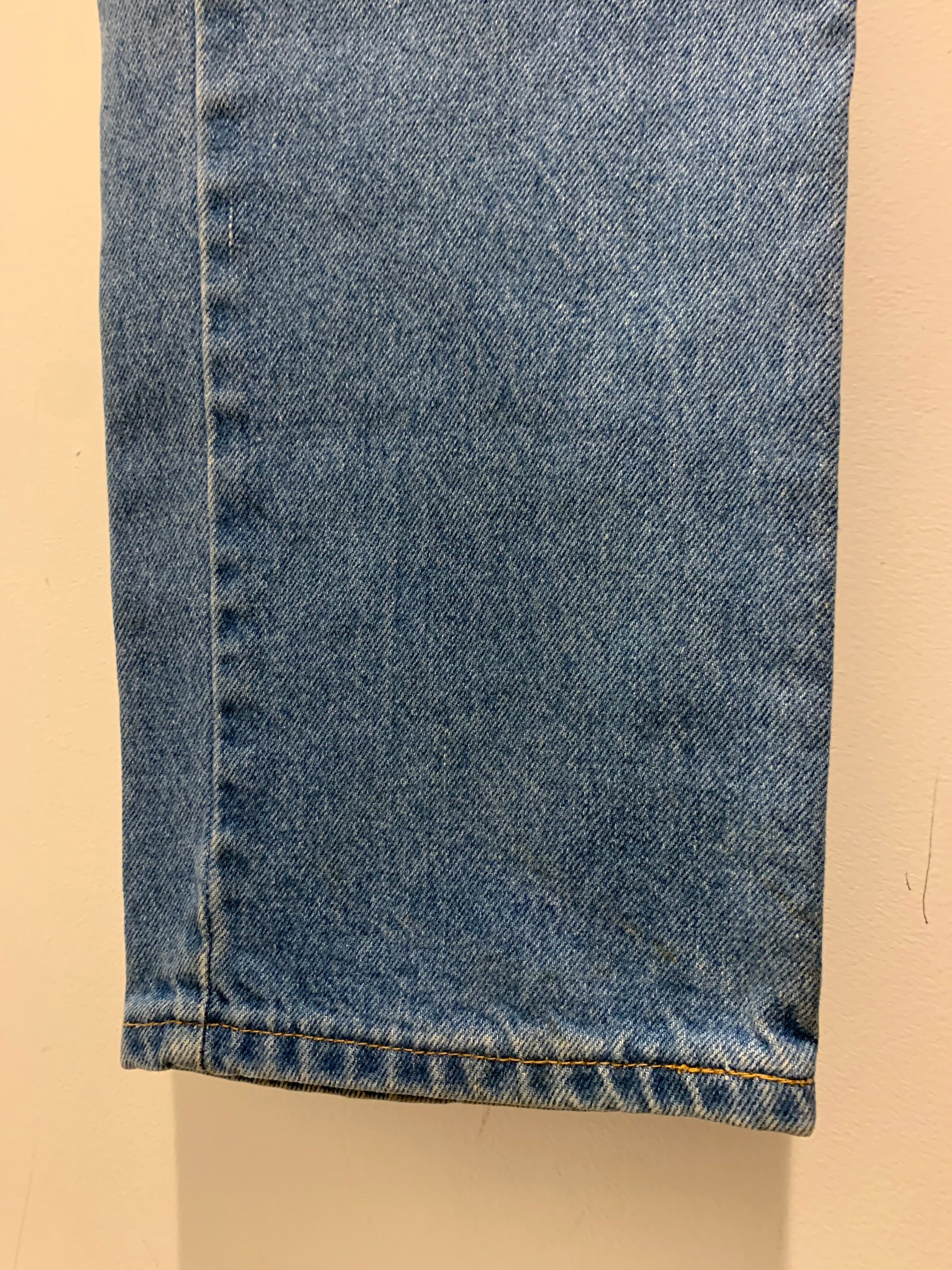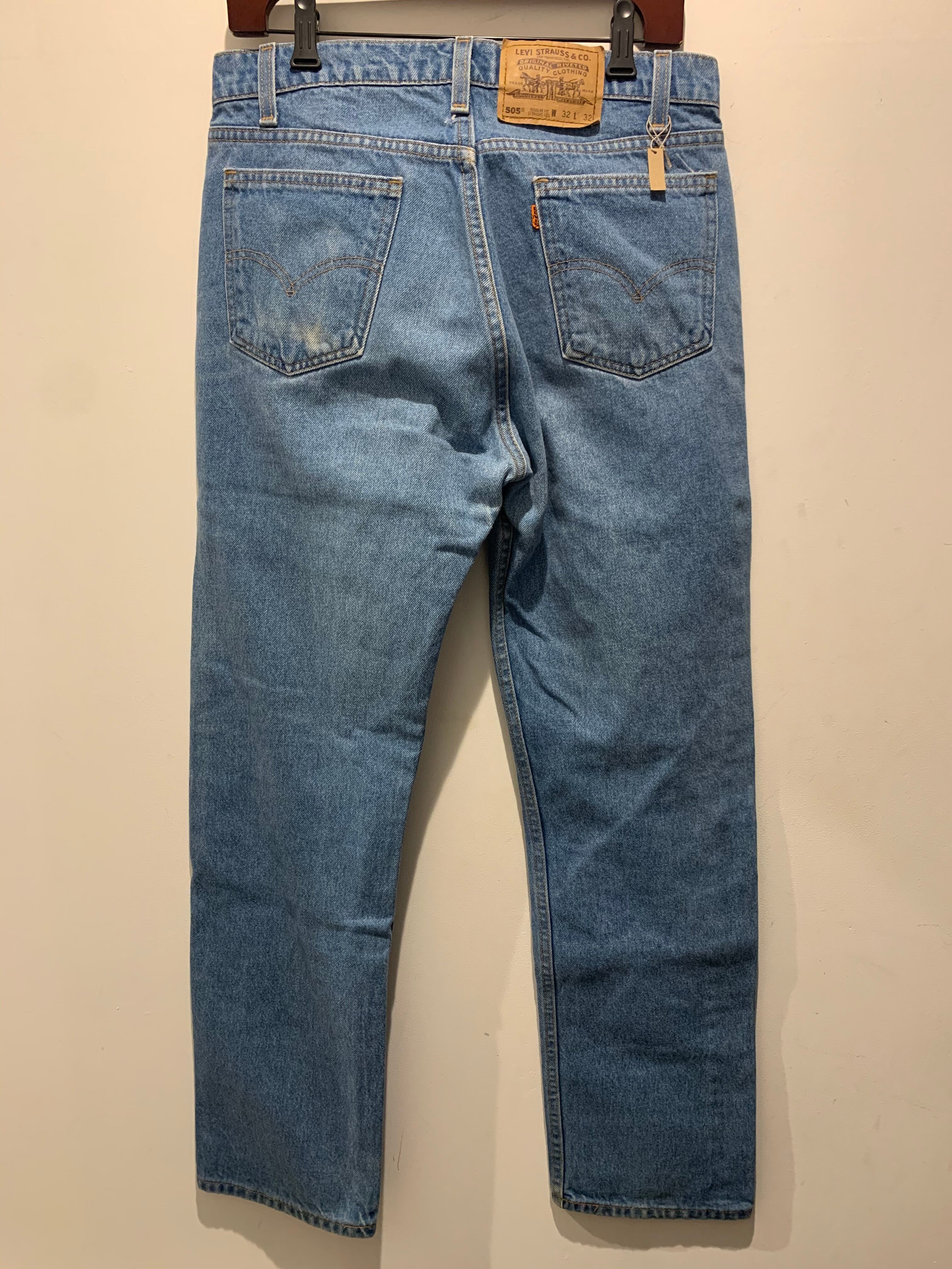 90年代アメリカ製リーバイス505です。薄っすらとヒゲも出ている綺麗な色落ちのデニムパンツです。1997年9月製造の物で希少になってきたアメリカ製リーバイスです。505なのでジッパー仕様でリーバイスジッパーにトップボタン裏は575となります。パッチ表記がW32,L32と日本人向けの良いサイズ感ですね。裾はシングルステッチでアタリも出ていてロールアップして履くのもオススメです。