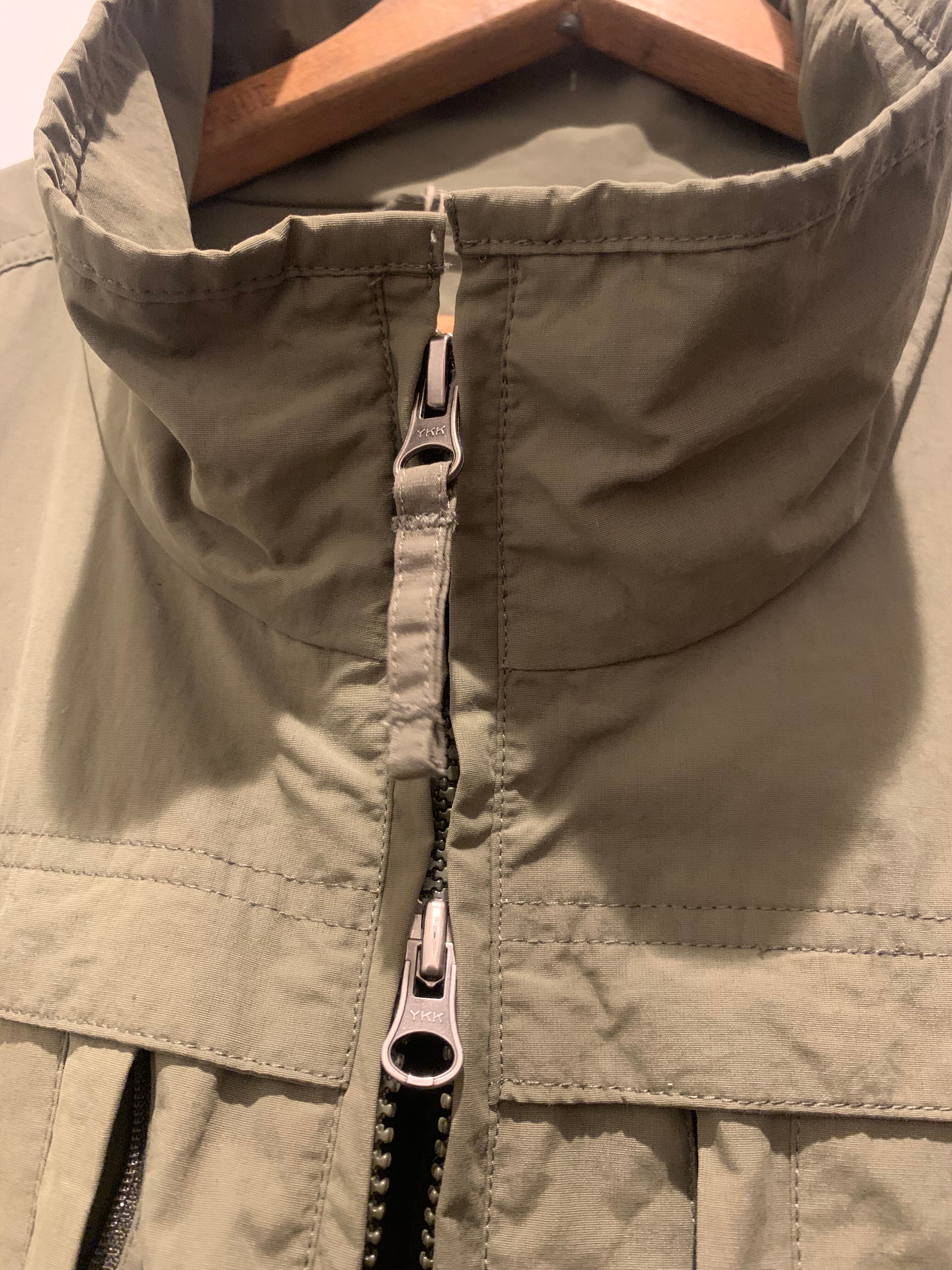 90年代カベラスのフィッシングベストです。1961年アメリカで設立したブランドのカベラス。ハンティングアイテムを多数出しているイメージが強いブランドですね。こちらはフィッシングベストで良くある着丈の短いタイプでは無く着丈が長くオーバーサイズとなります。コットン×ナイロンの素材感も良く色味がミリタリーのようなオリーブグリーンがとても良いですね。左右非対称のポケットやダブルジップ、裾のドローコードなどデザイン×機能性が備わっています。年中使えるアイテムでレイヤードにも優れ、多数のポケットがあるのでバッグ入らずでオススメです。