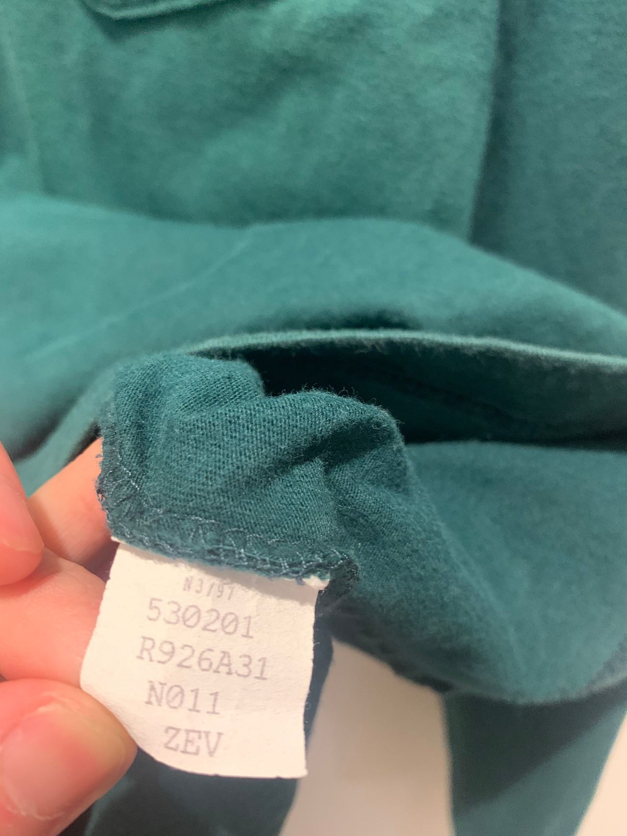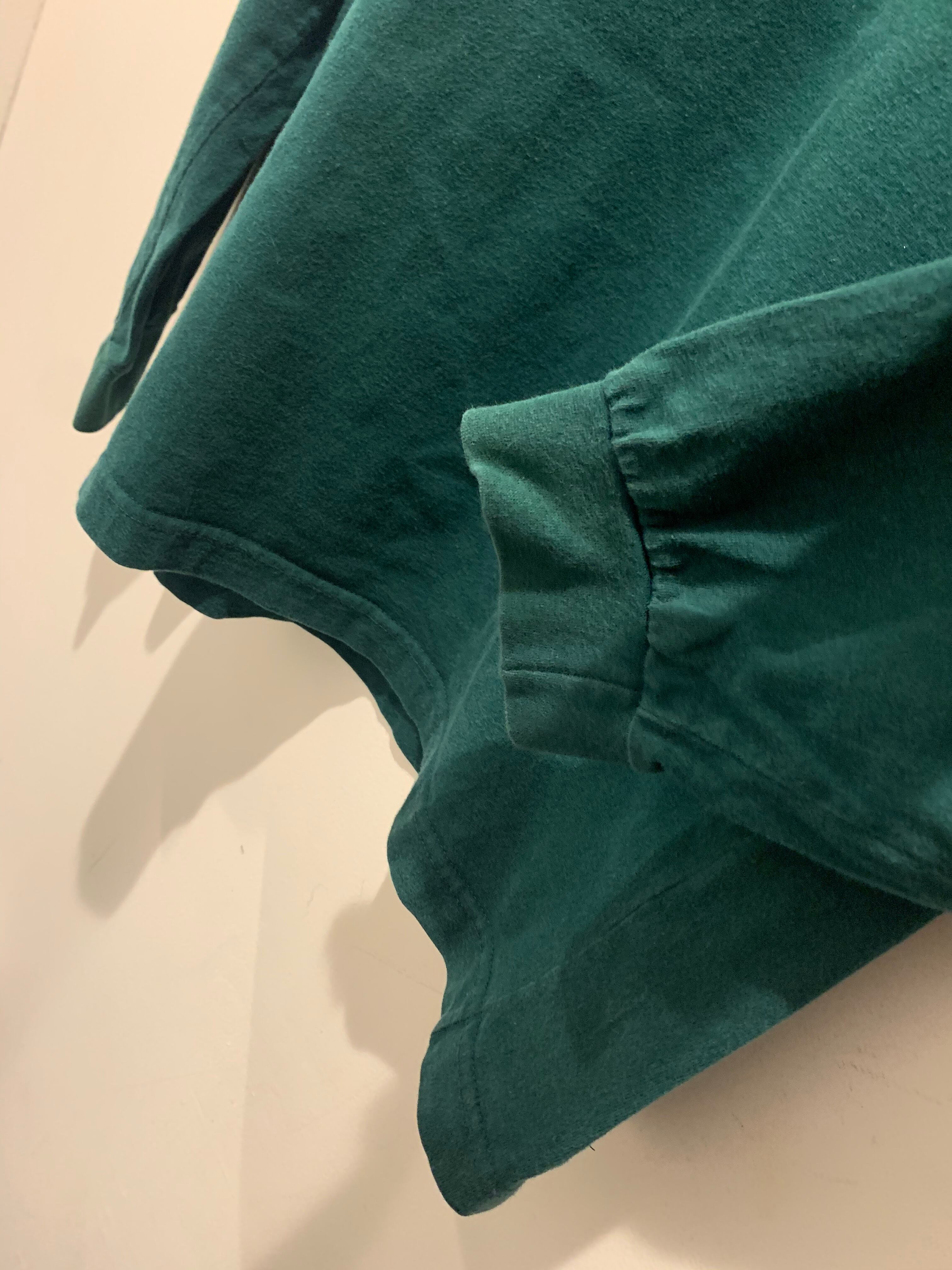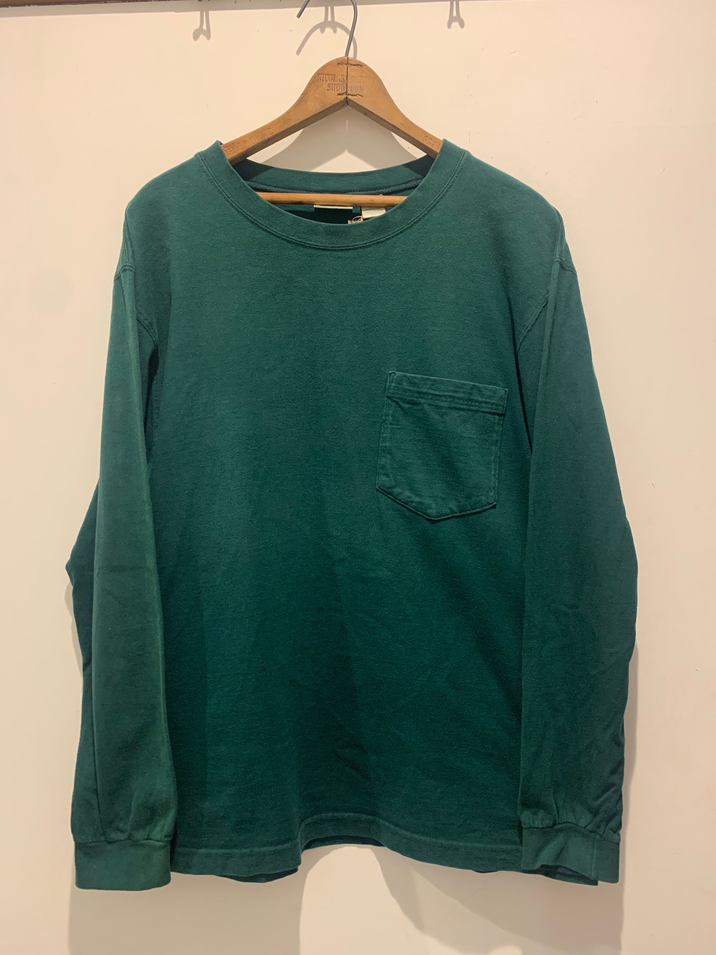 90年代アメリカ製L.LビーンのロングスリーブTシャツです。カラーは深めのグリーンの無地となります。シンプルなデザインですが100%コットンでアメリカ製、そしてポケット付きが嬉しいポイントですね。少しフェードしたグリーンカラーが雰囲気ある1着です。Mサイズ表記ですが大きめな作りでユニセックスでオススメです。