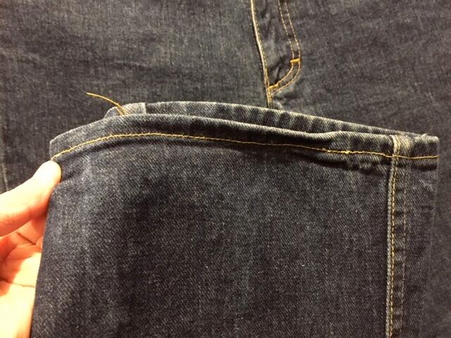 色残りは8割〜9割程と濃いインディゴです。希少なアメリカ製で濃紺なデニムは少なくなってきているのでサイズの合う方はオススメです。ジッパーは42タロンを使用しています。裾が若干あげられていますがレングスも充分残っています。ブーツを履く方はブーツカットデニムはすっきり履けるので良いですね。