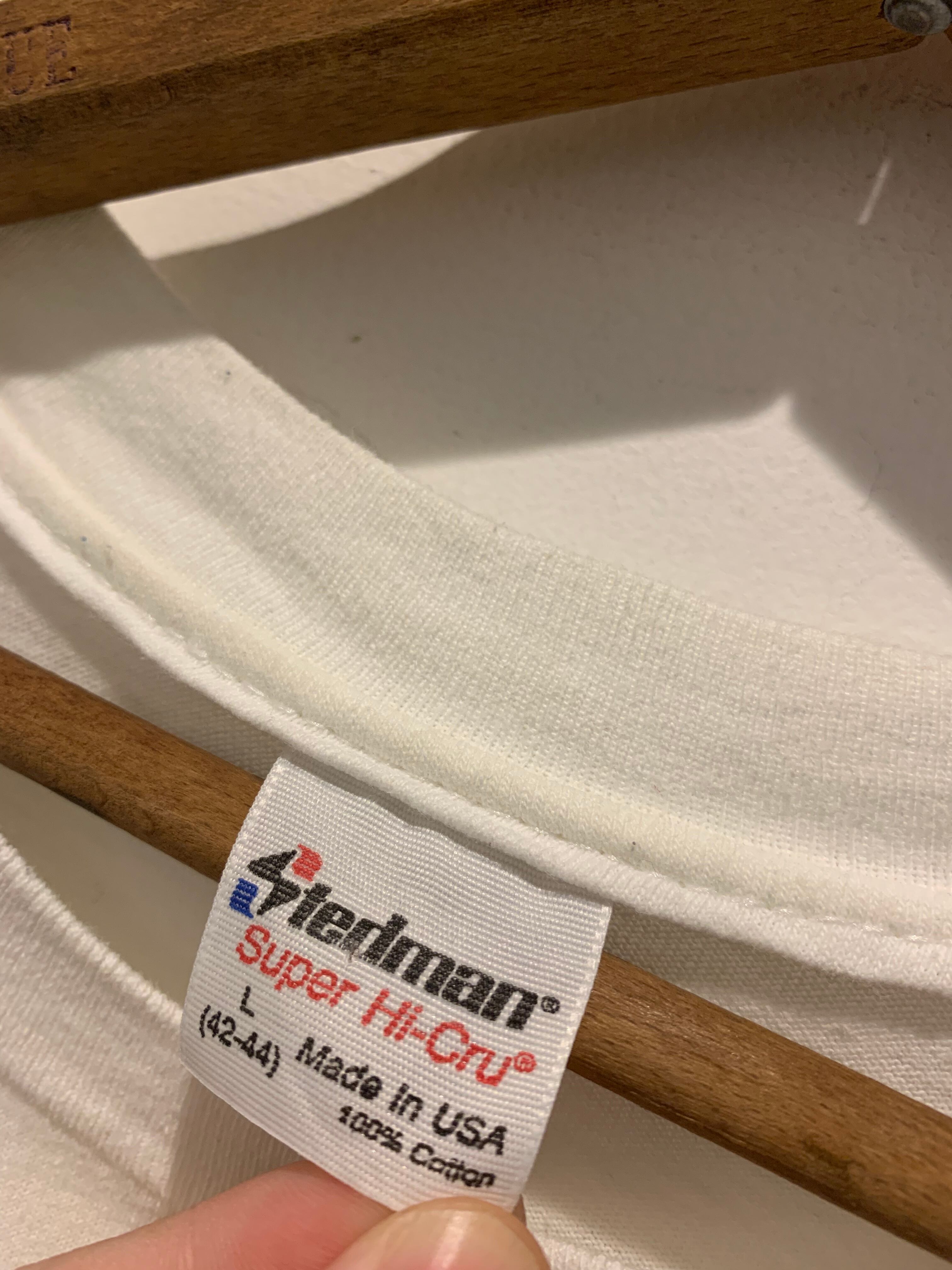 90年代アメリカ製ジミー・バフェットのTシャツです。アメリカ出身で歌手、作曲家、作家、映画監督など多彩な活躍をしているジミー・バフェット。こちらは91年のツアーTシャツとなります。白ボディにフロントとバッグにプリントされています。1枚でメインでも、インナーとして着用しても大活躍な1着です。袖、裾共にシングルステッチとなります。アメリカ製で100%コットンの白Tシャツはコンディションが良いものは年々減ってきていますね。
