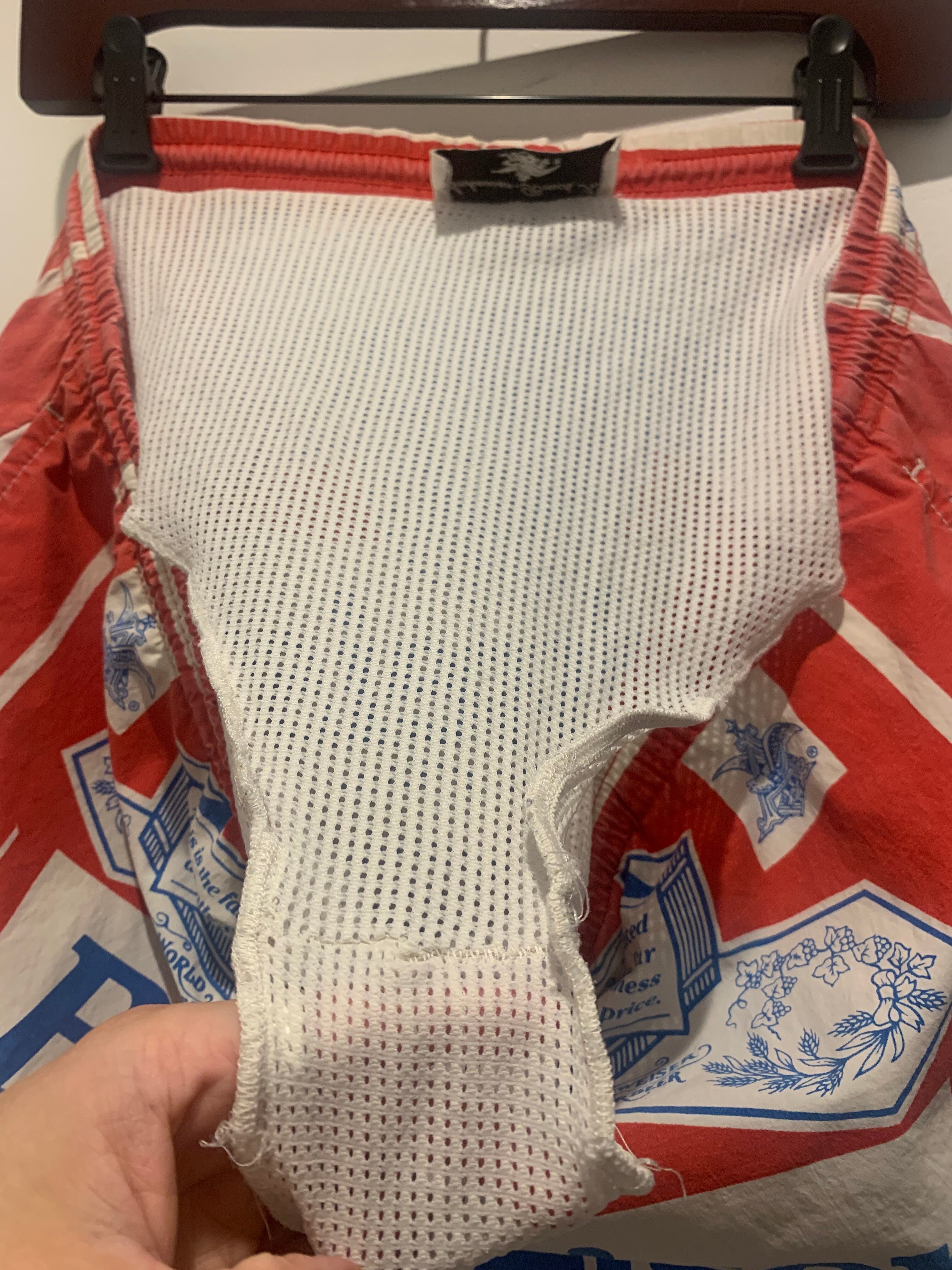 80年代アメリカ製バドワイザーのショーツです。1876年にアメリカで誕生し、「KING OF BEERS」のキャッチコピーで今も愛されているビール会社のバドワイザー。こちらは80年代のショーツで全面プリントされたインパクトあるデザインです。内側にメッシュも付くので水陸両用で使って頂けます。企業アイテムは集めている人も多く人気ですね。サイドポケットも付いていてデザインも良く、人と被りたく無い方にもオススメです。