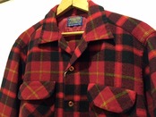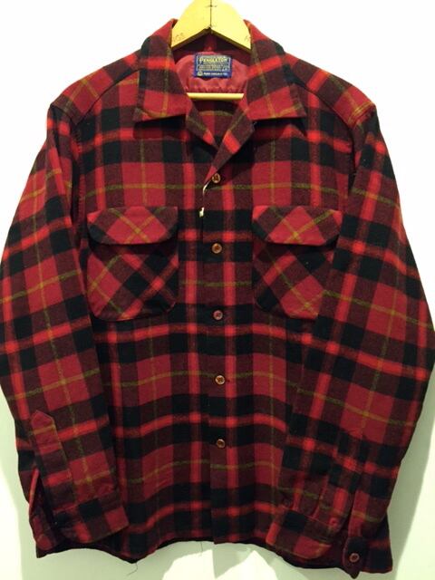 カラーはレッドベースです。60年代のペンドルトンのシャツでフラップ付きのポケットです。ブラックカラーもはいっているのでしまりがありかっこいいですね。サイズも大きめが多い中希少なMサイズとなっております。襟も小振りなところが良いです。デニム、ベイカー、スキニーとオールマイティに使える1着です。