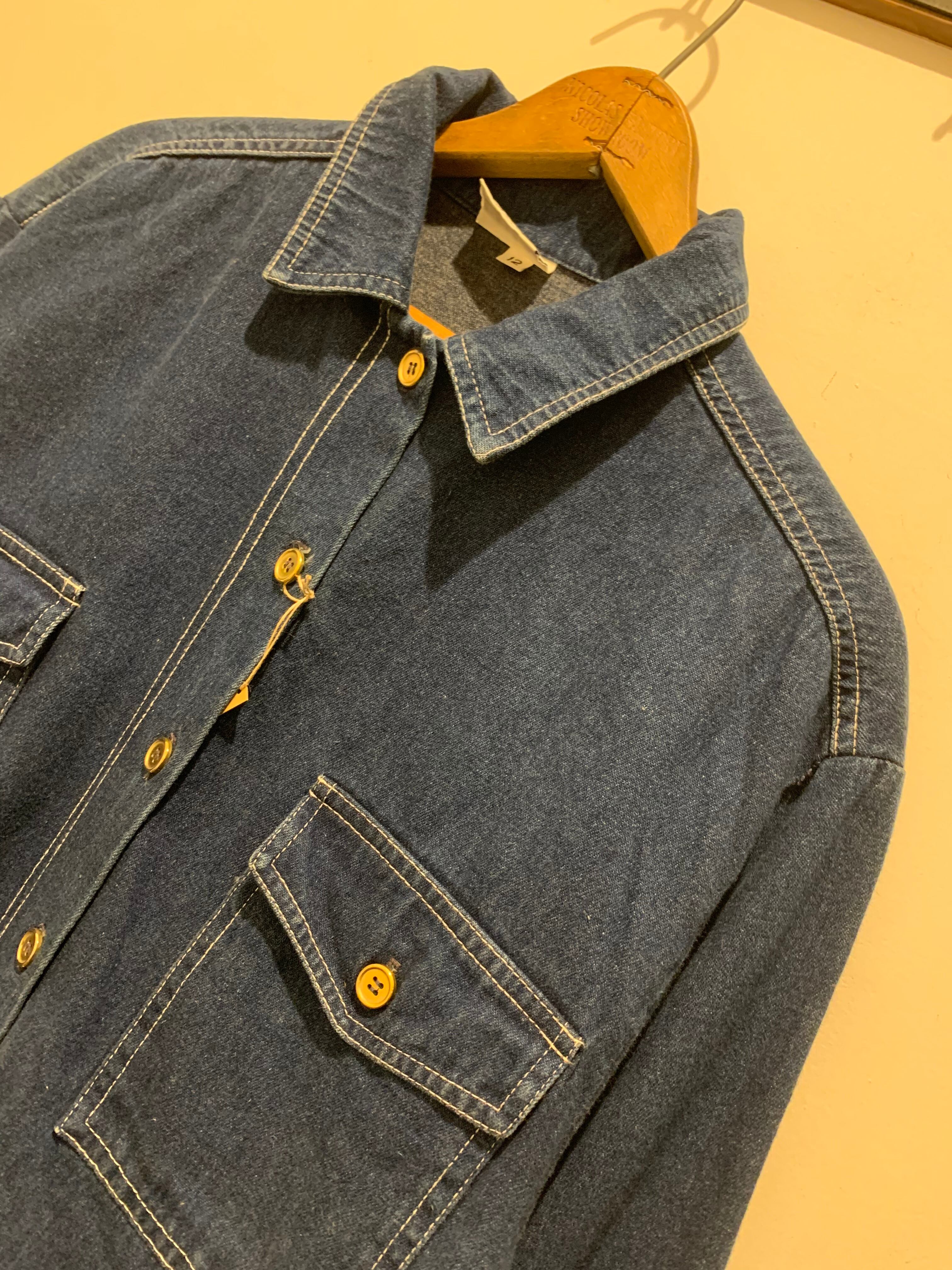 90年代レディースのアメリカ製デニムジャケットです。リーバイスのセカンドのような2ポケットのジージャンでゴールドのボタンがアクセントになっています。襟がダブルステッチだったり裾のリブがゴムになっていて着用しやすくなっているのもポイントです。デニムの色も良くしっかりアメリカ製なのもオススメです。