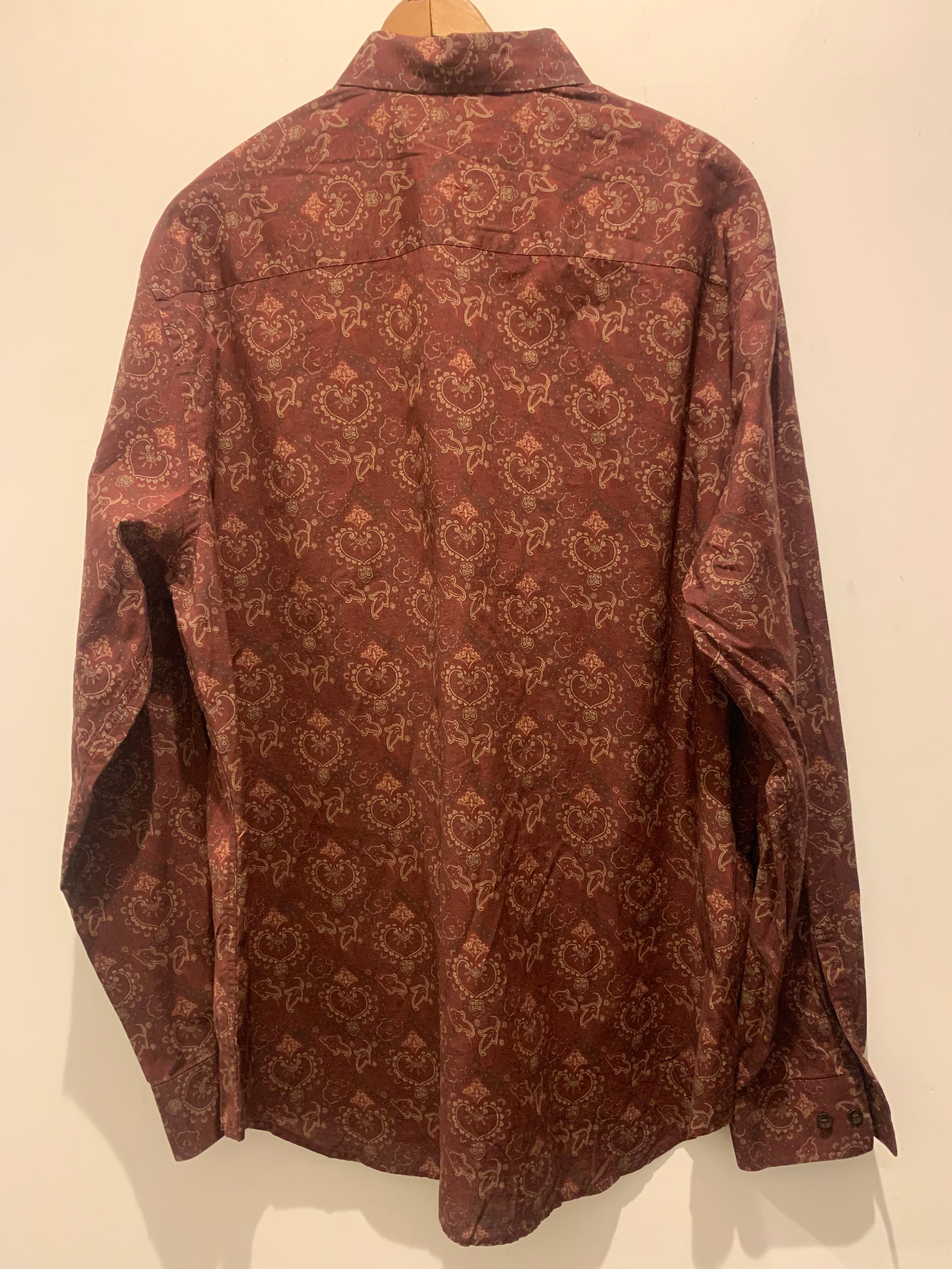 ペリーエリスの総柄シャツです。ニット、シャツ、パンツなどデザインや質の良いものが多いペリーエリス。こちらは落ち着いた深みのある色味にペイズリー柄と渋くて上品な1着です。スラックスなどに合わせると相性が良さそうですね。メインでもインナーとしても使えてコンディションも良くユニセックスでオススメです。