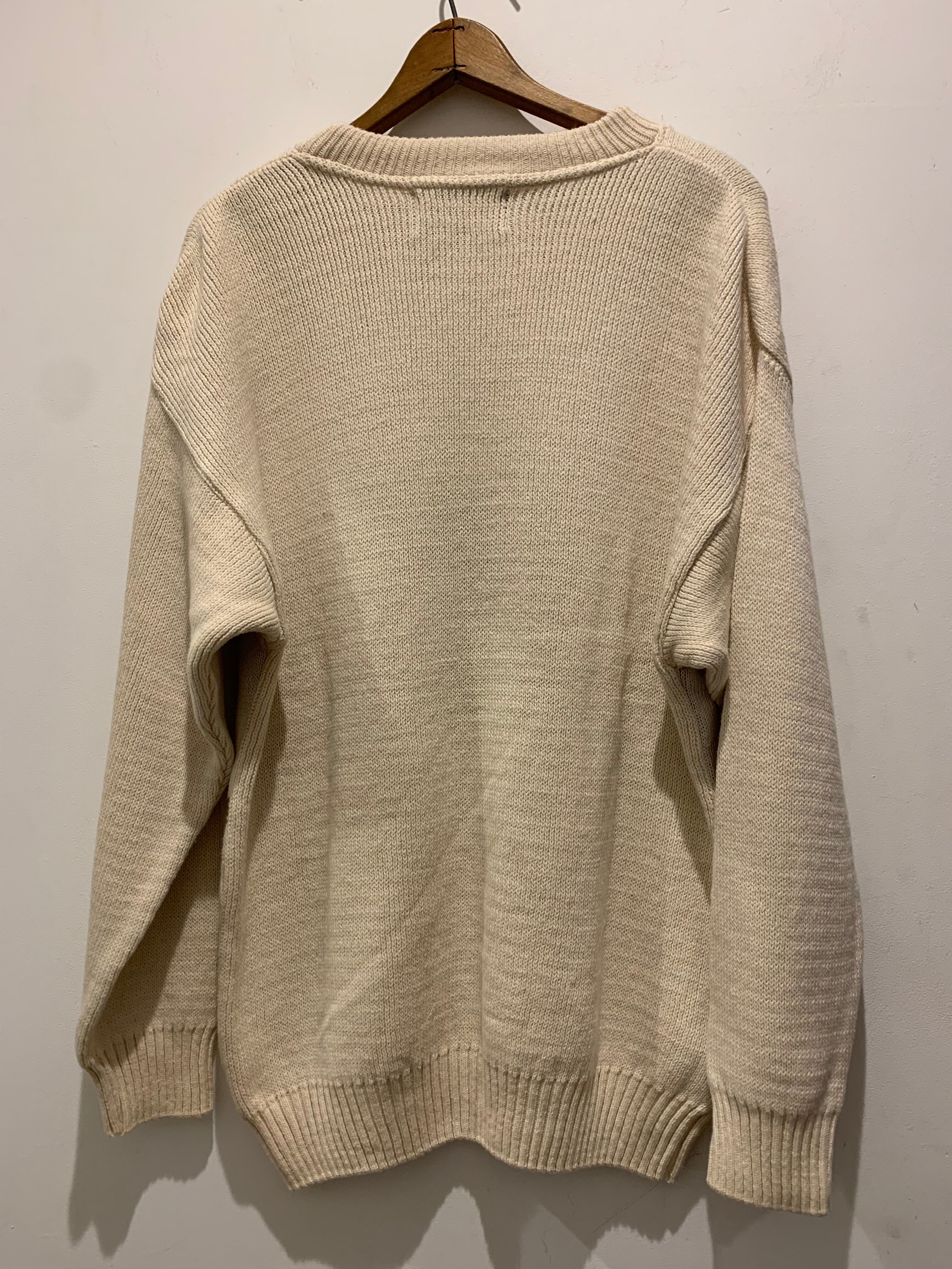90年代アメリカ製の星条旗コットンニットです。このデザインを見るとラルフローレンを思い浮かべる方が多いと思いますが他ブランドの物となります。オフホワイトカラーに大きめな星条旗デザインがインパクトある1着です。そしてアメリカ製でコットン100%なのも着やすくとても良いですね。Sサイズ表記ですが結構大きめな作りとなっています。白物ですがコンディションも良くユニセックスでオススメです。