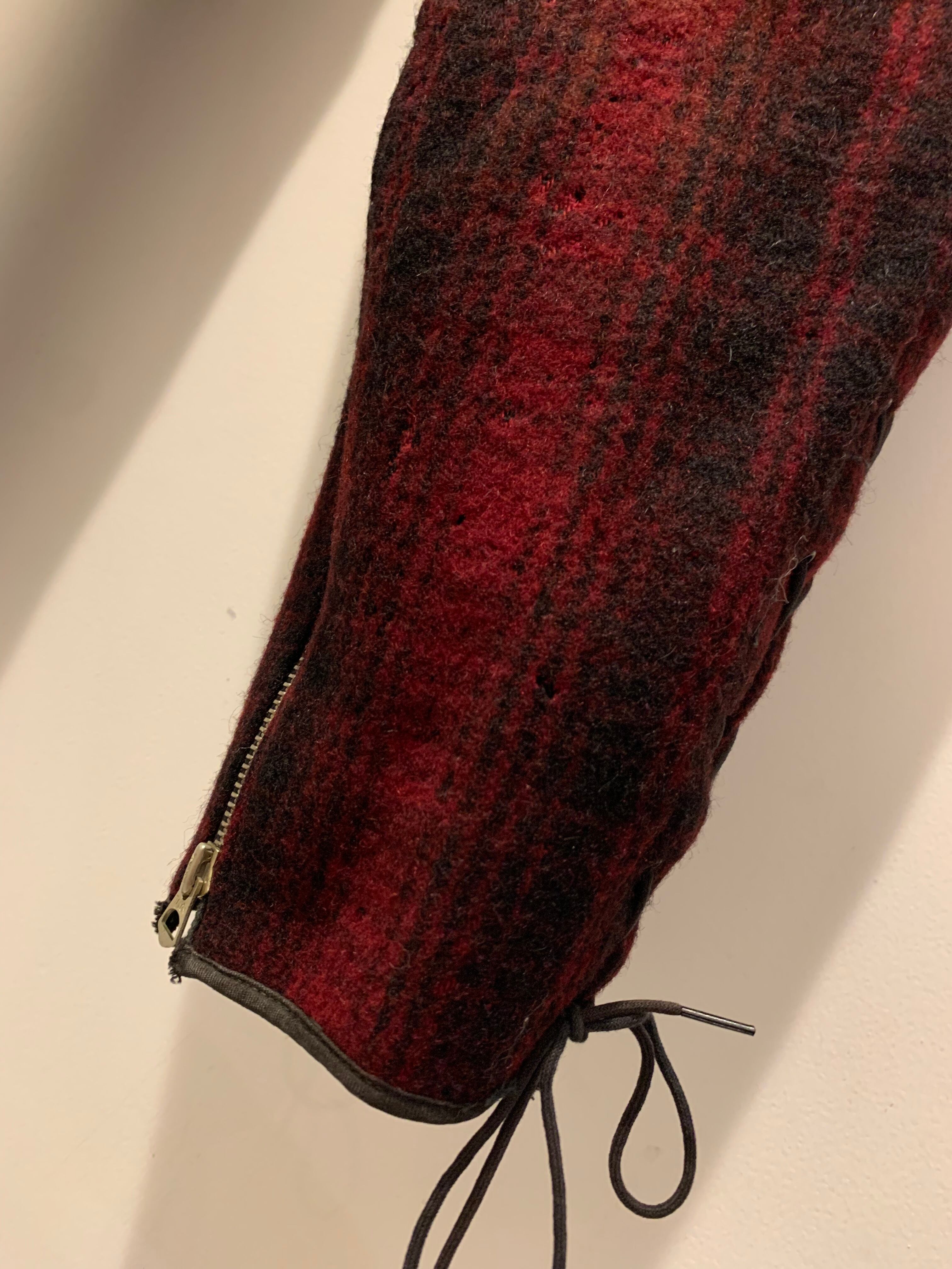 40年代ビンテージ ウールリッチのハンティングパンツです。レッド×ブラックのチェックで膝はダブルニー仕様となります。裾にはコの字留めのTALONジッパー、サスペンダーも付けれる黒ラッカーのボタンなどビンテージディテールも魅力的ですね。80年程前のパンツが履ける状態でサイズの合う方にはオススメな1本です。
