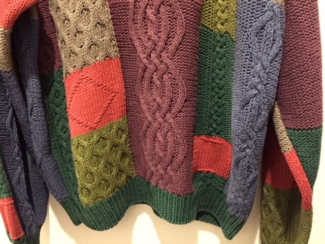 こちらはハンドメイドの物でカラーパターンはもちろんですが編み方もマルチとかなり手のこんだ1着です。当時の定価はここまでの作りですとお高い感じが想像出来ますね。ブランドもウールリッチと嬉しいポイントです。クージー系よりも玉数が少なく被る事が無いのでオススメです。ざっくりと着用出来るサイズ感です。