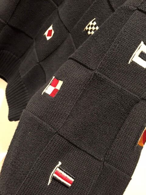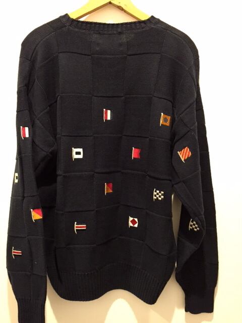カラーはネイビーです。パネル使用で国旗のデザインがされていてシンプルながらアクセントもあるオシャレな1着です。コットンですのでちくちくせずにスウェット感覚で着用出来るのが良いですね。ありそうでなかなか無い1着ですので人と被りたく無い方もオススメです。