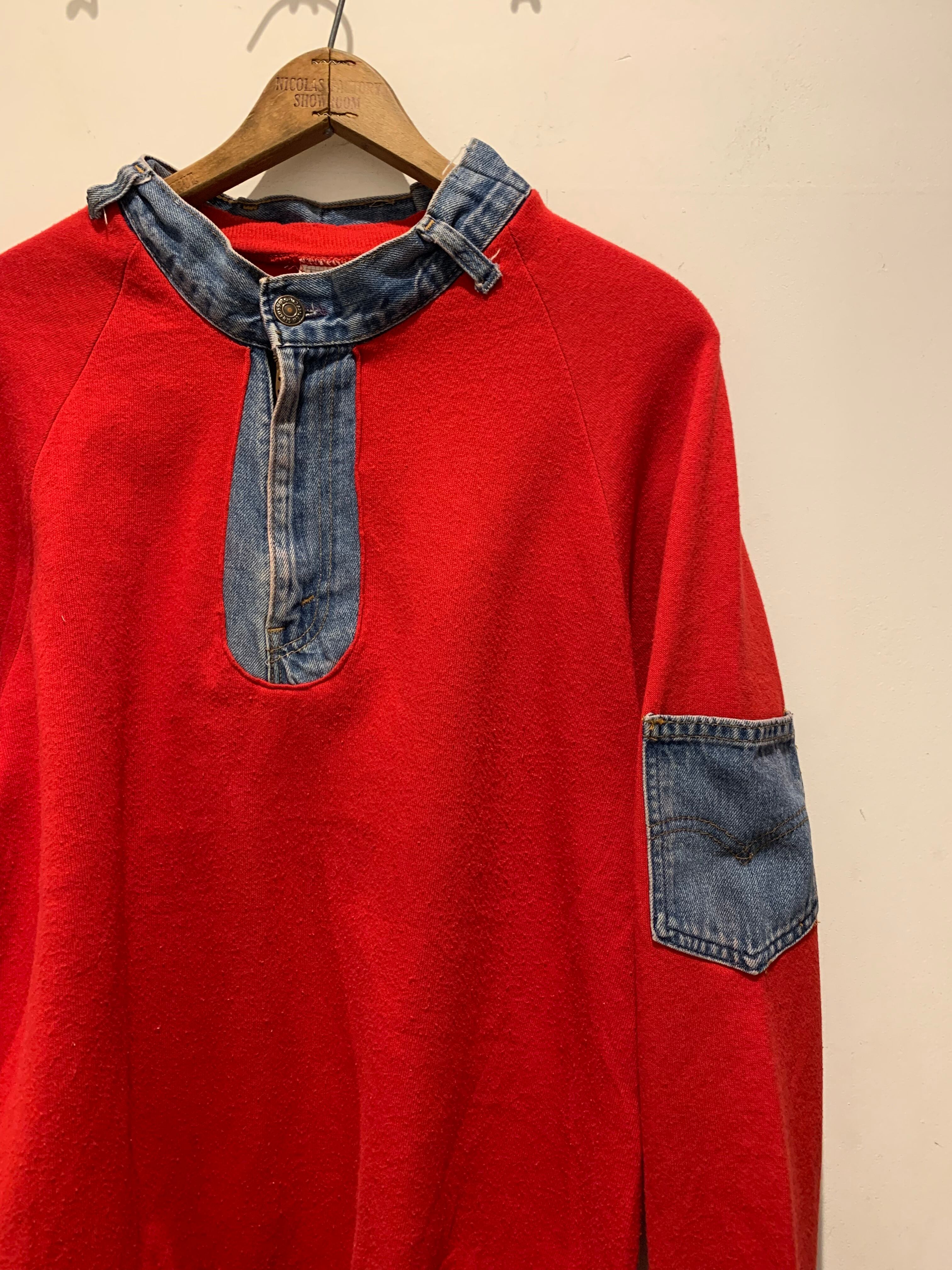 80年代アメリカ製ジャージーズ×リーバイスのスウェットです。赤ボディに襟元と袖にリーバイスのポケットがカスタムされた面白い1着です。仕入れた時からこの感じだったので当時の人がカスタムされたと思われます。ハーフジップ仕様になっていてしっかり42TALONを使われているのもポイントですね。斬新なデザインでユニセックスでオススメな1点です。