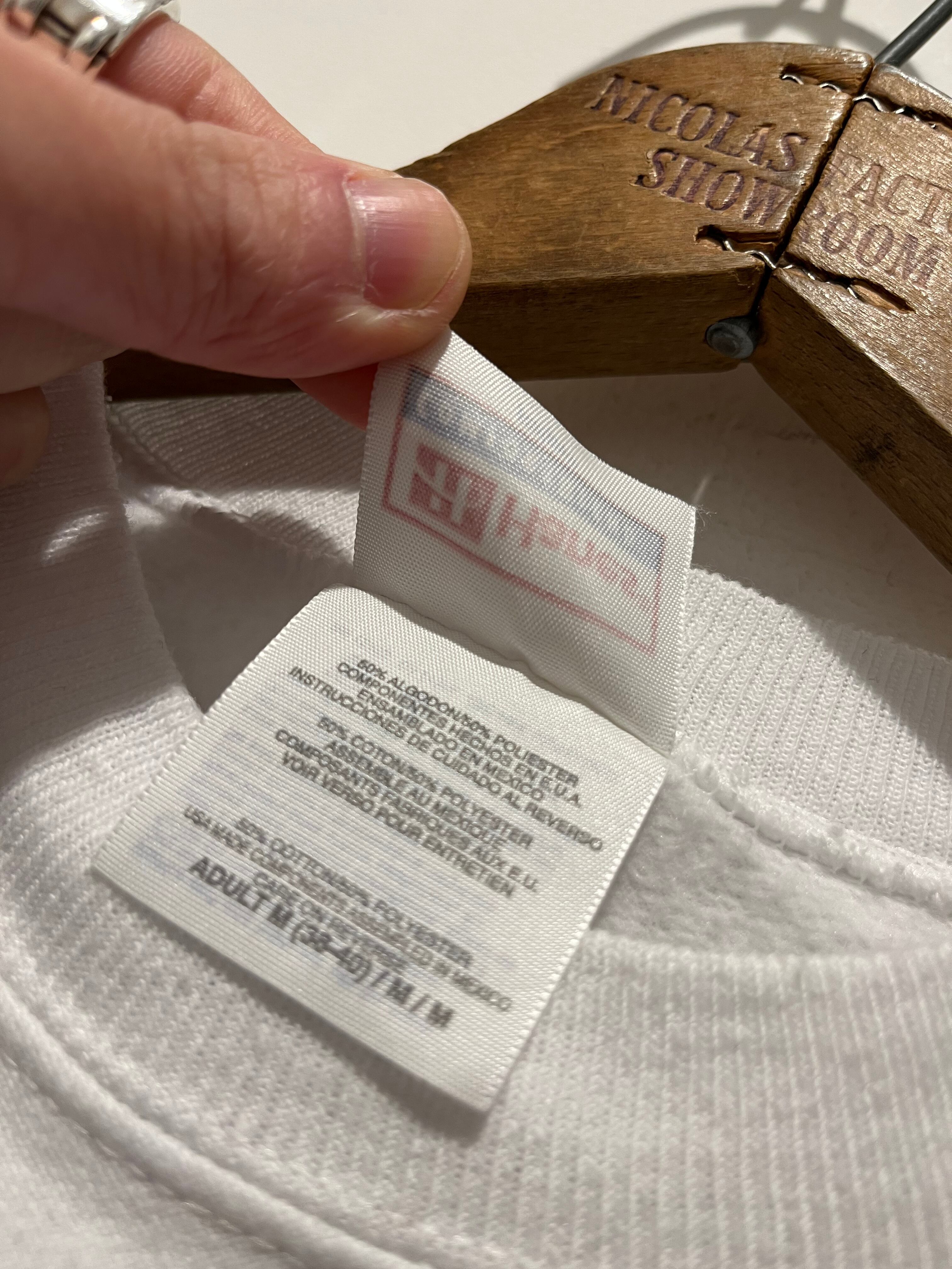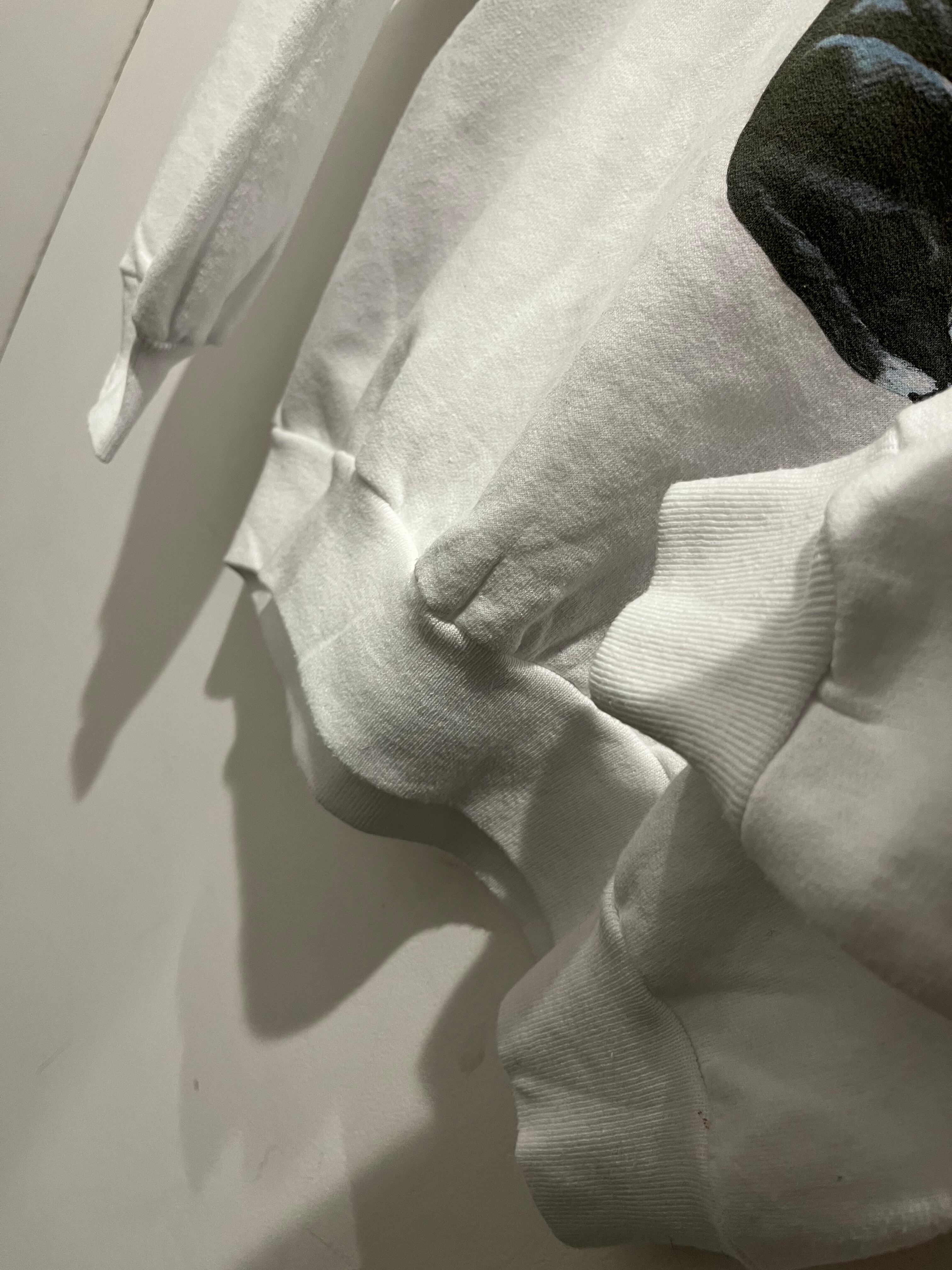 90年代ヘインズの犬プリントスウェットです。ヘインズの2枚タグでホワイトボディとなります。3方向からの犬のプリントがとても可愛く良いデザインですね。白ボディですとシミがあったりするのも多いのですがこちらはシミも無く裏起毛もまだフカフカでとても綺麗なコンディションでオススメな1点です。