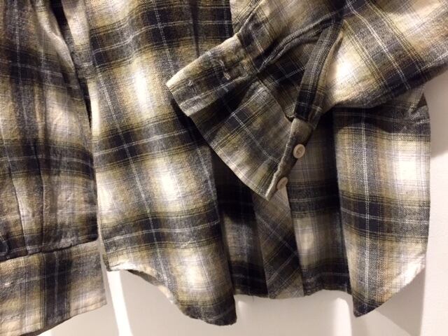 カラーはブラック×ホワイト×グレー×カーキです。70年代三角タグ付きのシアーズのネルシャツです。70年代ものですが襟が大きすぎず100%コットンというのもポイントが高いです。そしてモノトーンベースのシャドーチェックがとてもかっこいいですね。サイズも希少なSサイズでオススメです。