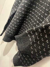 トミーヒルフィガーのデザインニットです。チャコールグレーカラーにL.L.Beanの名作バーズアイのようなデザインがお洒落な1着です。良く見るとカラーネップも入り、胸のさりげないロゴも良いですね。大きめな作りで柔らかい生地感で着用しやすくユニセックスでオススメです。