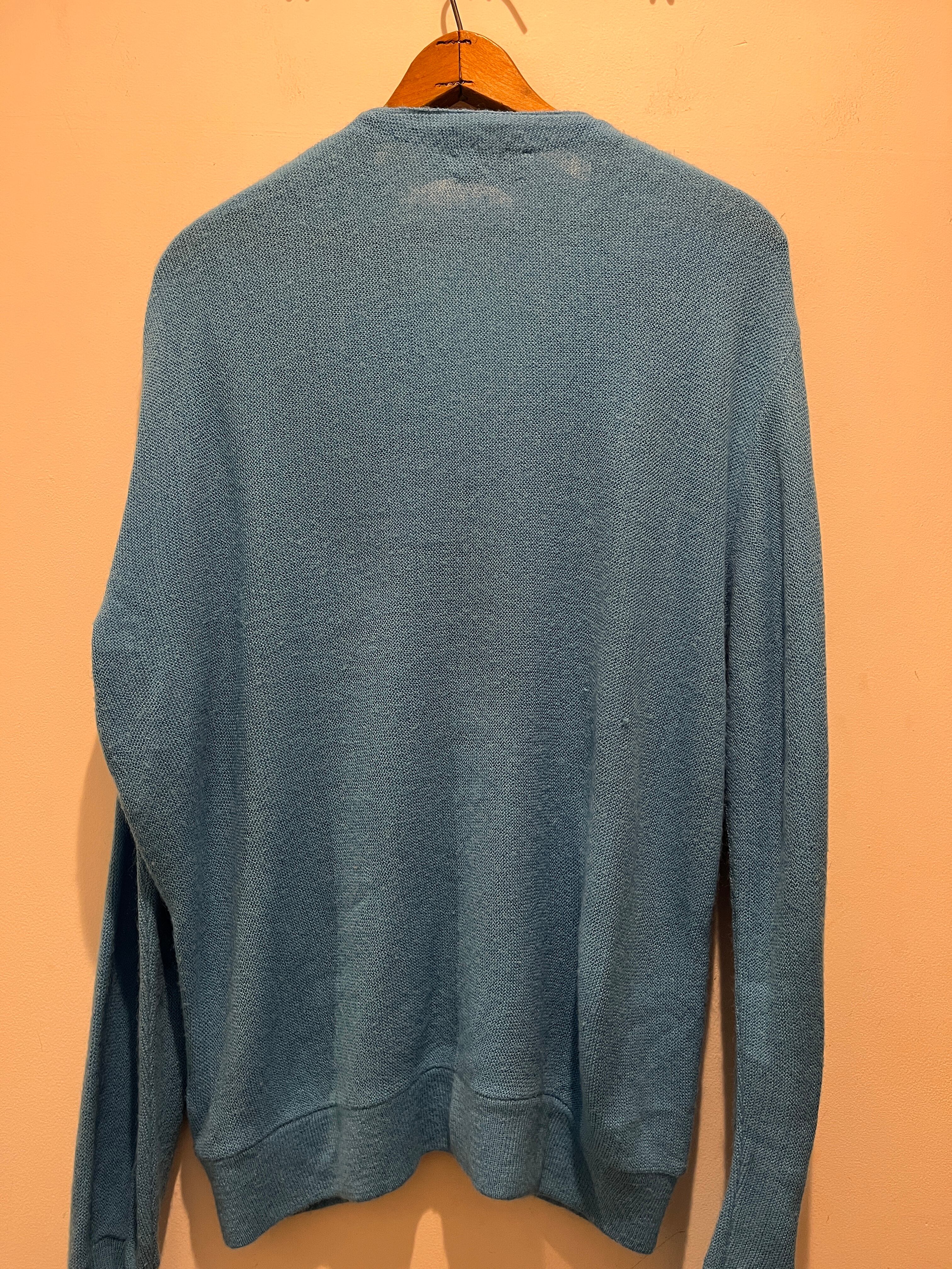 80年代アメリカ製のアクリルカーディガンです。鮮やかな水色カラーで無地のカーディガンとなります。カーディガンはインナーとしてもメインでもサラッと着用できるのが魅力的ですね。しっかりアメリカ製というのもポイントでユニセックスでオススメな1点です。