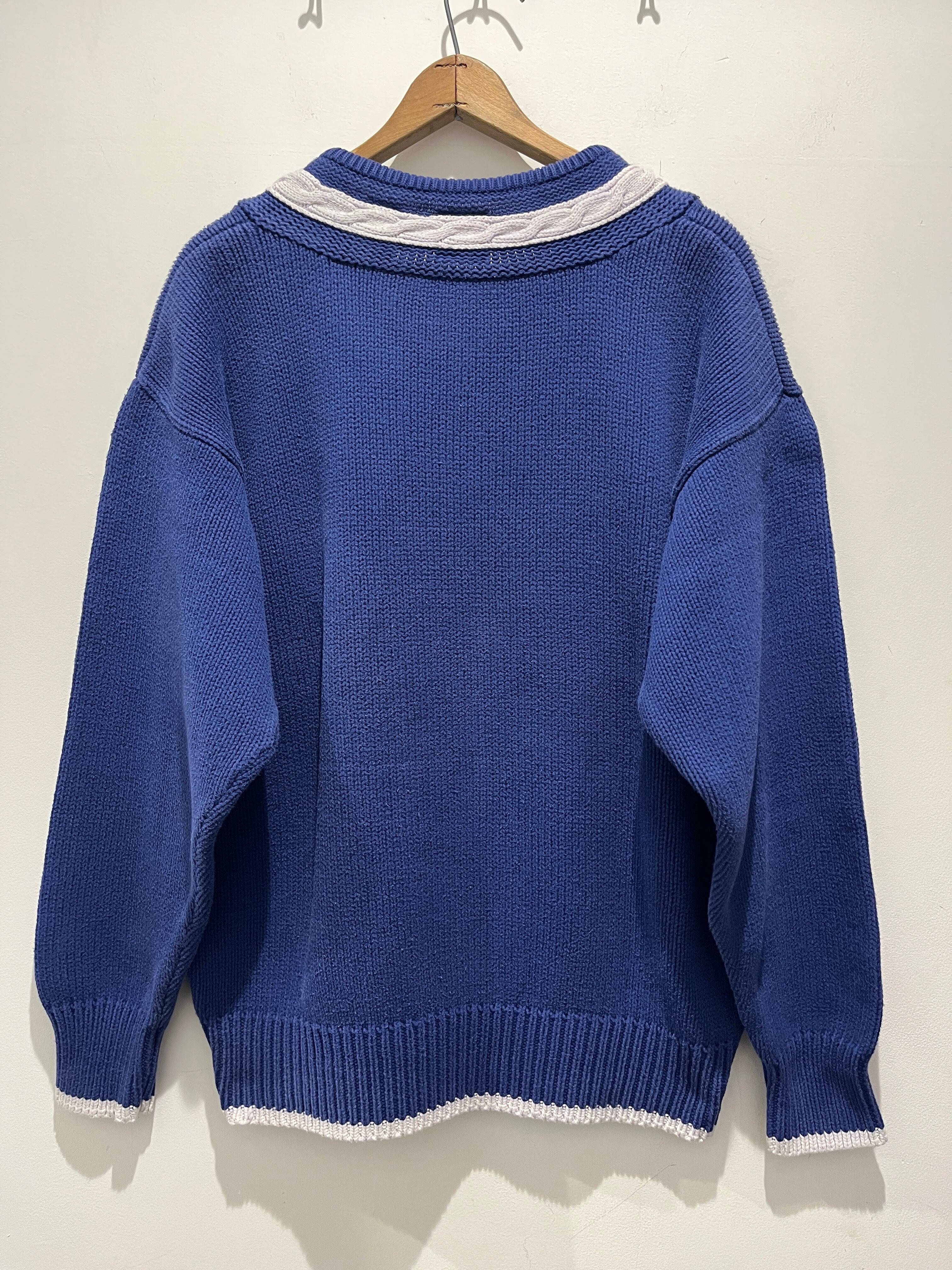 90年代OLD GAPのコットンニットです。ネクストヴィンテージとして注目されている90年代のOLD GAP。こちらはブルーベースで浅めのVネックでチルデンニットの雰囲気もありますね。100%コットンでしっかりとした生地感でガンガン着ていいただける1着です。