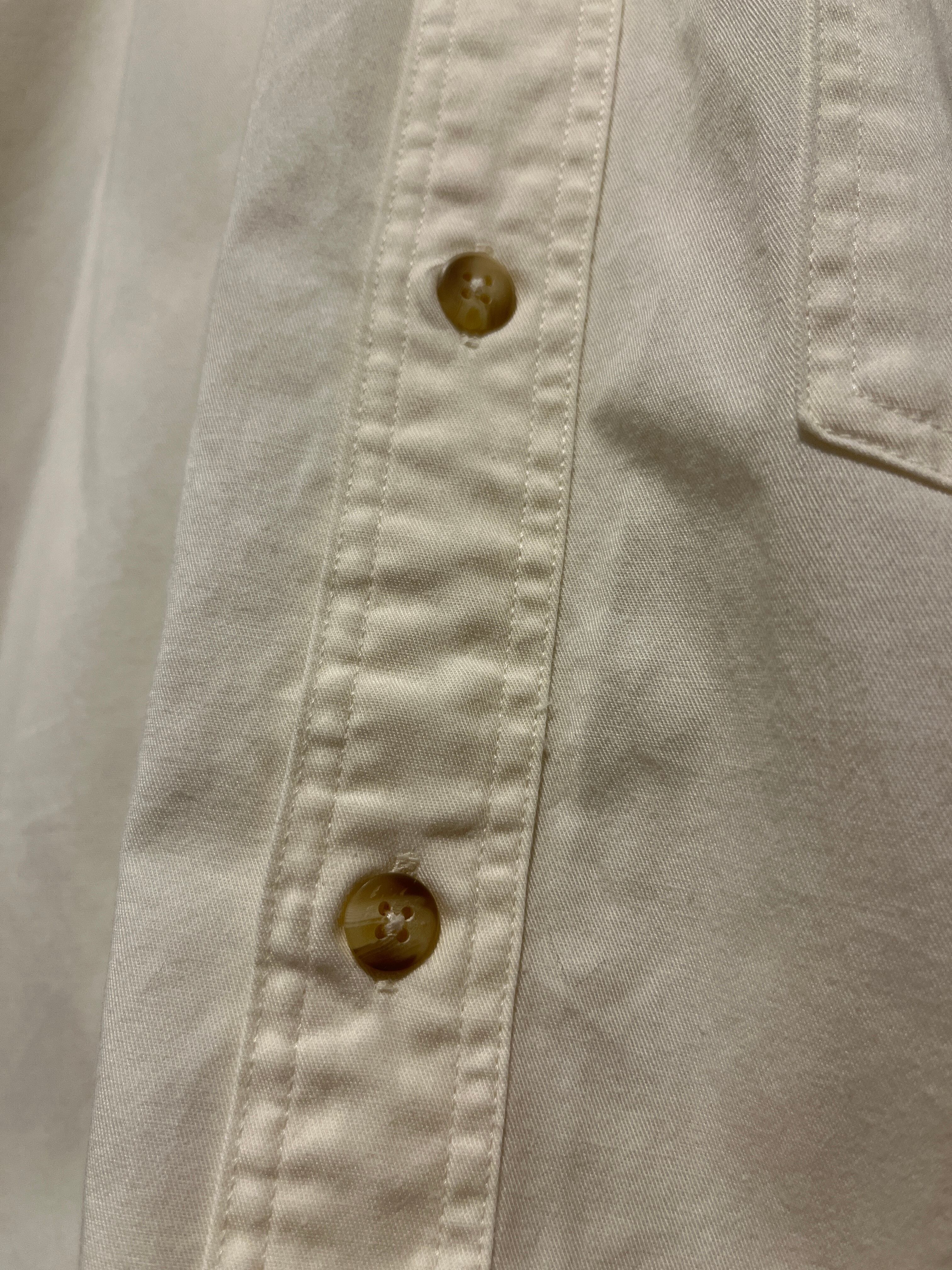 90年代OLD GAPのコットンシャツです。ネクストヴィンテージとして注目されている90年代のOLD GAP。こちらはオフホワイトカラーにポケット刺繍が同色で入るさりげないデザインとなっています。白物としてはシミなど無く綺麗なコンディションです。90年代らしい大きめな作りで100%コットンのしっかりとした生地感でガンガン着ていいただける1着です。
