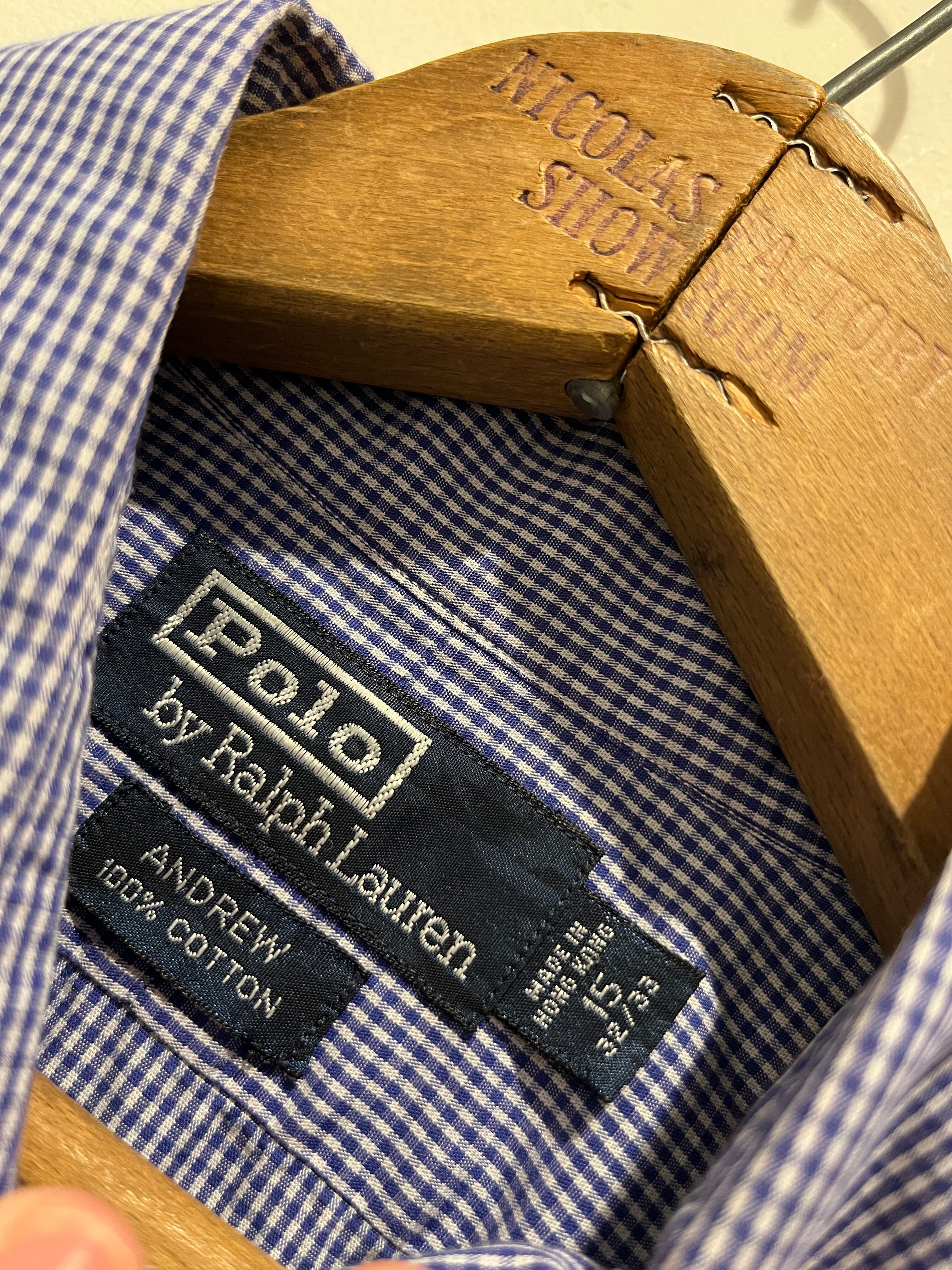 ラルフローレンのギンガムチェックシャツです。カラーはブルー×ホワイトのギンガムチェックでポニーマークが入らないタイプとなります。ワンポイントのラルフより無地のタイプの方が数が少なく希少ですね。インナーとしても使えてコンディションも良くユニセックスでオススメな1点です。